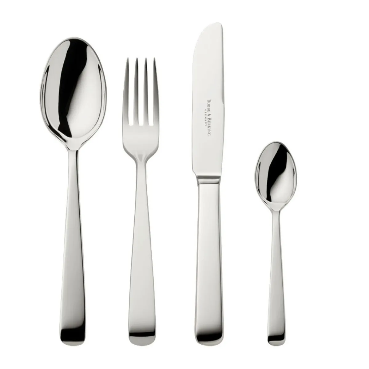 Mit der 4-teiligen Garnitur – bestehend aus Menülöffel, -messer, -gabel und Kaffeelöffel – erwerben Sie einen Klassiker unter den Silberbestecken. 1982 von Wilfried Moll für Robbe & Berking entworfen, ist die Kollektion Alta preisgekrönt und in verschiedenen Museen als meisterhafte Schmiedekunst ausgestellt. Das wertbeständige Besteck aus 925er Sterlingsilber überzeugt durch vollendetes Design und perfektes Handling. Gut zu kombinieren ist die Serie mit dem Besteck-Set Riva. Alta kann problemlos in der Spülmaschine gereinigt werden.