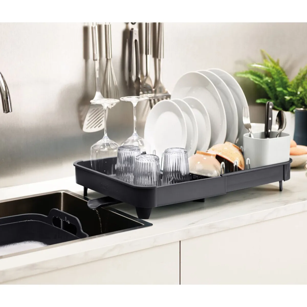 Mit diesem hochfunktionalen Abtropfgestell der Serie Extend von geht Ihnen Ihr Abwasch schnell und einfach von der Hand. Auch bei größeren Geschirrmengen ist dieser Küchenhelfer eine smarte Lösung, da er sich auf die doppelte Größe ausziehen lässt.