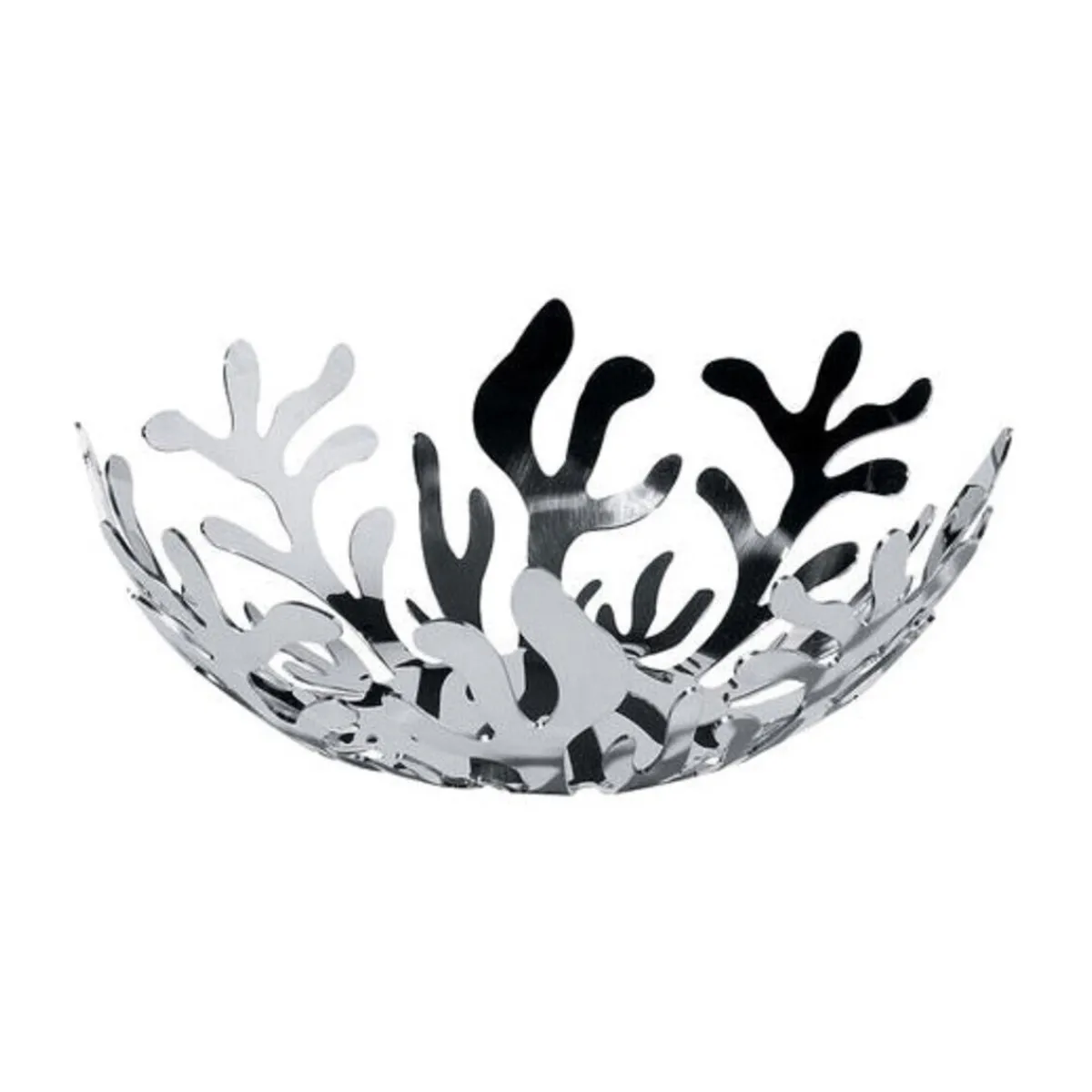 Diese Obstschale ist eine gelungene Kombination aus Design und Funktion: Die Schale Mediterraneo gehört zur gleichnamigen Serie des Herstellers . Ihre verästelte Form, die an Korallenriffe erinnert, wirkt filigran und modern. Sie können die Obstschale nicht nur zur Lagerung von Obst und Gemüse verwenden, die dank der offenen Gestaltung ausreichend mit Luft versorgt werden. Sie ist außerdem ein besonders glanzvolles Deko-Objekt auf dem Sideboard oder in der Glasvitrine.