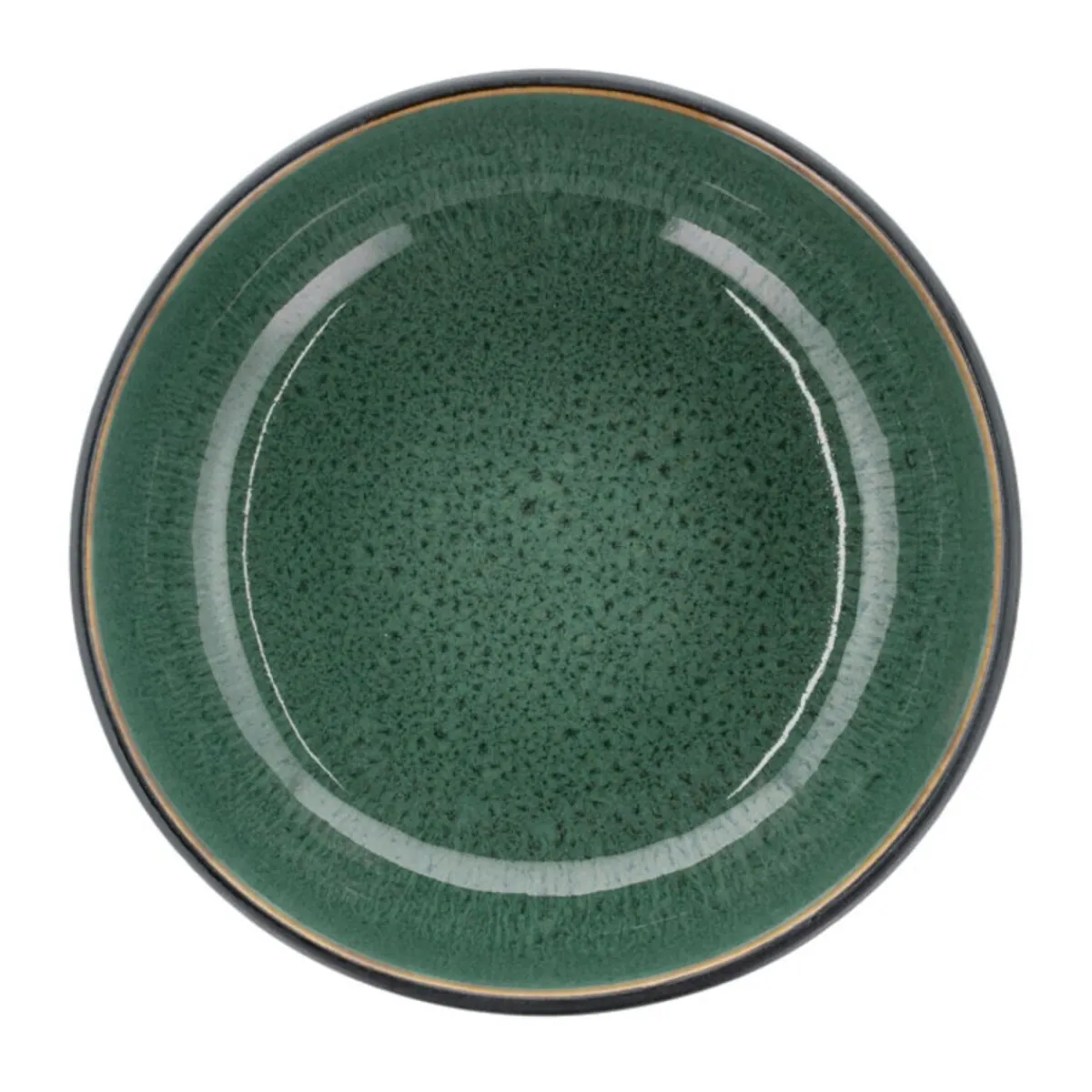 - glasierte Innenseite mit grün schillernden Farbverläufen und -schattierungen