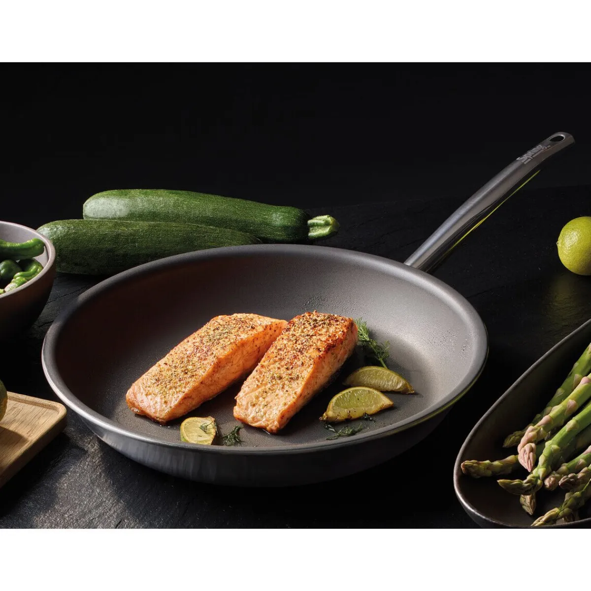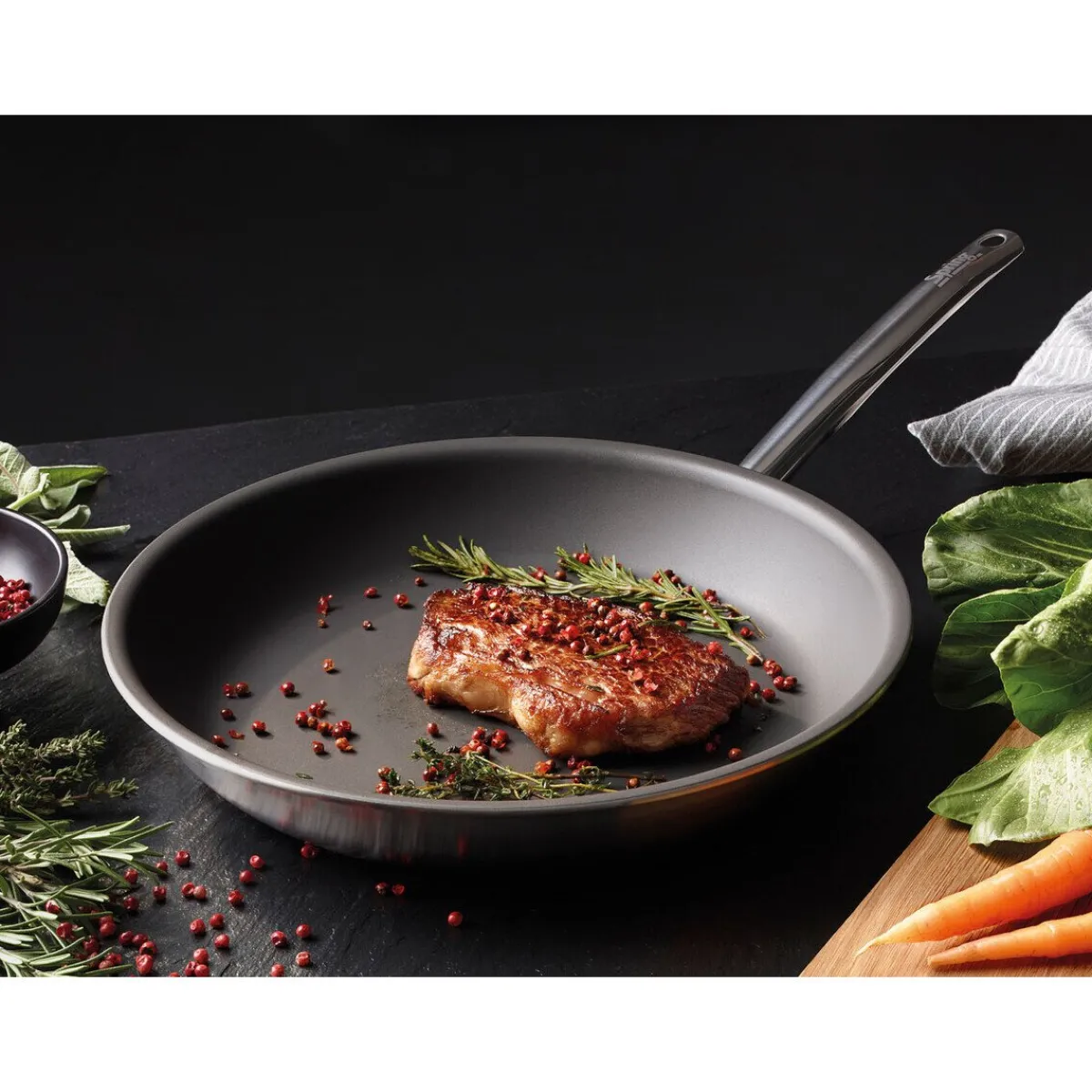 Die Bratpfanne Brigade Ultimate von begeistert durch die hohe Kratzfestigkeit ihrer innovativen Oberfläche. Diese ist thermisch mit der obersten Schicht des 5-lagigen Mehrschichtmaterials verschmolzen, wodurch eine hohe Robustheit und eine ideale Wärmeverteilung garantiert ist. Nutzen Sie diese Pfanne zum schonenden Garen sowie zum krossen Anbraten bei hohen Temperaturen und begeistern Sie Ihre Lieben mit verführerischen Aromen und einer hohen Saftigkeit.