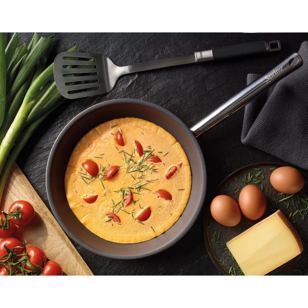 - metallische Küchenhelfer lassen sich problemlos in der Pfanne einsetzen