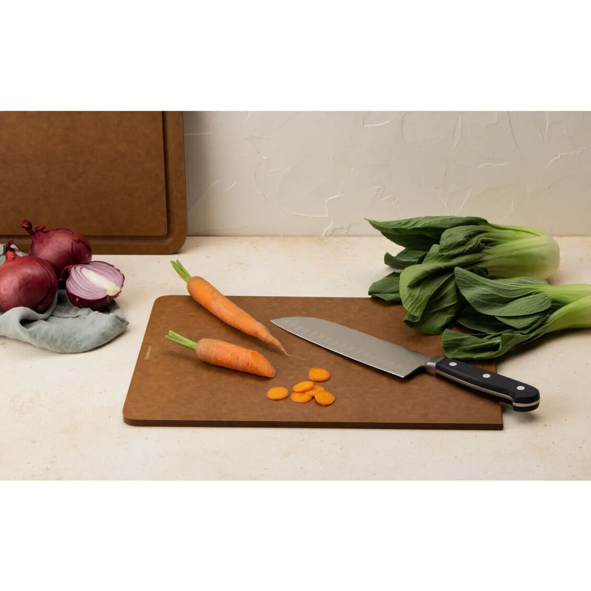 Das großflächige Schneidebrett Duracore von eignet sich hervorragend zum Schneiden großvolumiger Lebensmittel. Die Oberfläche der robusten Holz-Papier-Faser ist sanft im Umgang mit Ihren Küchenmessern und ist dennoch stabil und widerstandsfähig konzipiert.