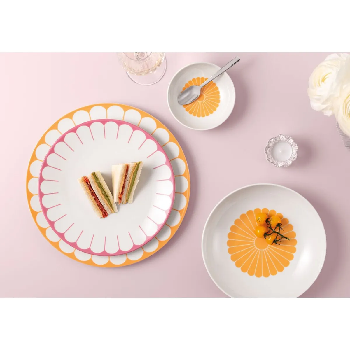Die Dessertschale Fleur soleil von kommt mit einer warmen Ausstrahlung daher und lässt auf Ihrer Tafel eine hübsche Blume erblühen. Verführerische Desserts lassen sich in dieser Schale auf hinreißende Art anrichten und werden von der modernen Flower Power sanft untermalt. Sorgen Sie mit diesem Geschirrstück für eine wohltuende Energie auf dem Tisch.