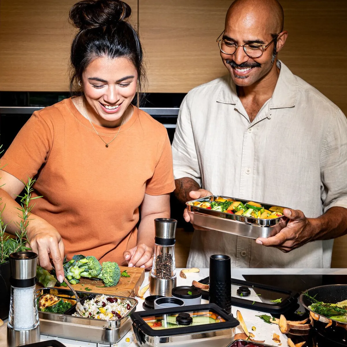 Die kompakte Dose Flexx 2Go von macht Ihnen den Küchenalltag leichter. In ihr lassen sich feste Speisen, wie belegte Brote, Gratins oder Bratlinge, sicher aufbewahren und mitnehmen. Durch den wählbaren Deckel ist ein sicherer Verschluss gewährleistet, wodurch das nächste Picknick, die Pause im Büro oder die Lagerung zuhause wesentlich vereinfacht wird. Nutzen Sie diese robuste Dose mit dem passenden Verschluss zum Lagern und Kredenzen.