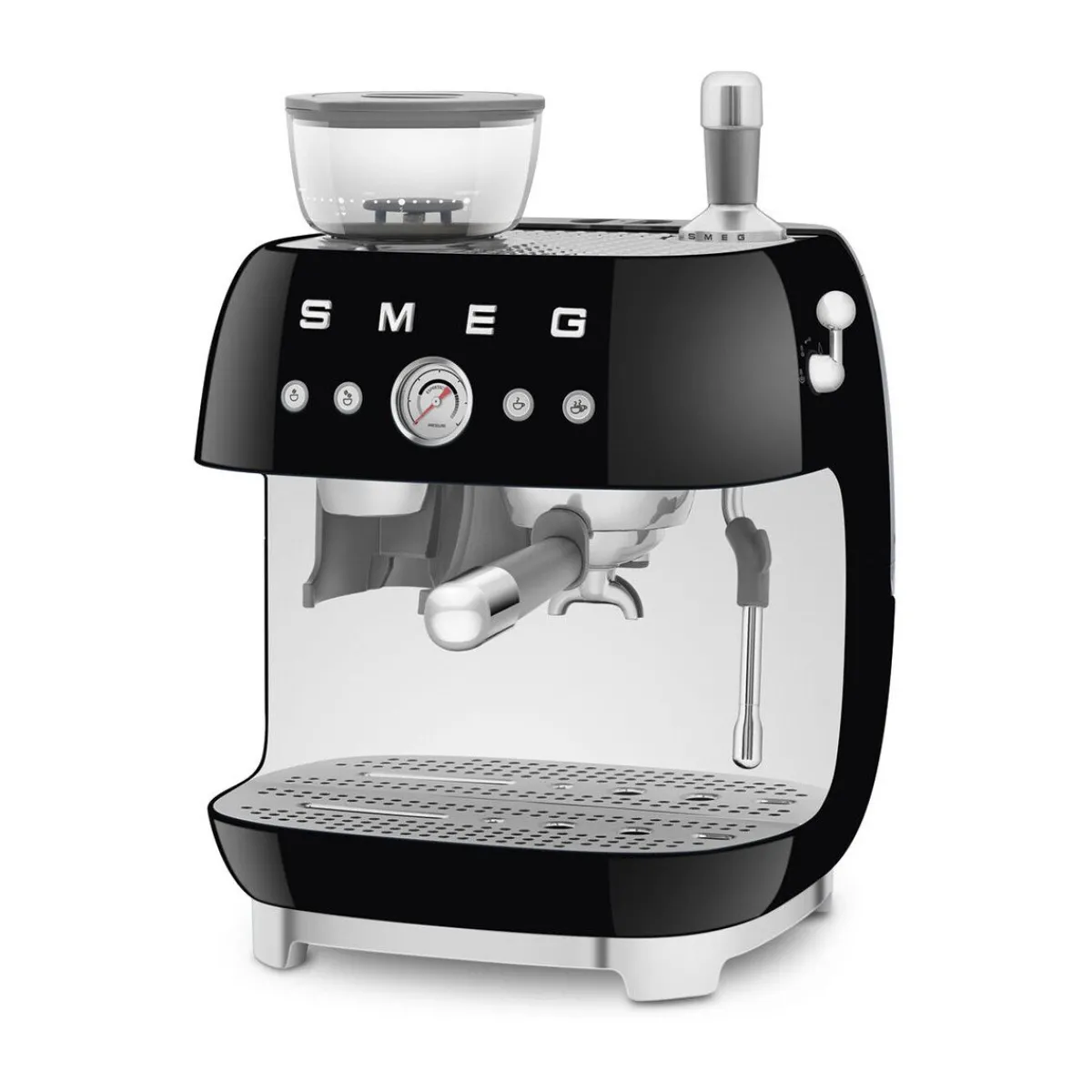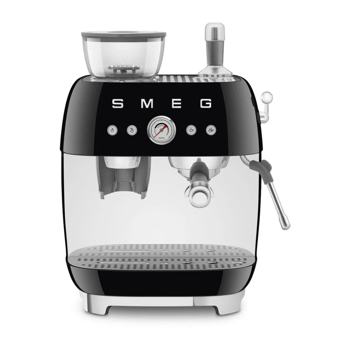 Die Espressomaschine mit Mahlwerk EGF03 der Serie 50’s Style von begeistert nicht nur durch ihr Design, das an den 1950er-Jahre-Stil angelehnt ist, sondern auch durch ihre hohe Leistungsstärke und die integrierte Kaffeemühle. Sie erhalten aus dieser Maschine vollmundige Ergebnisse, die an Barista-Qualität erinnern.