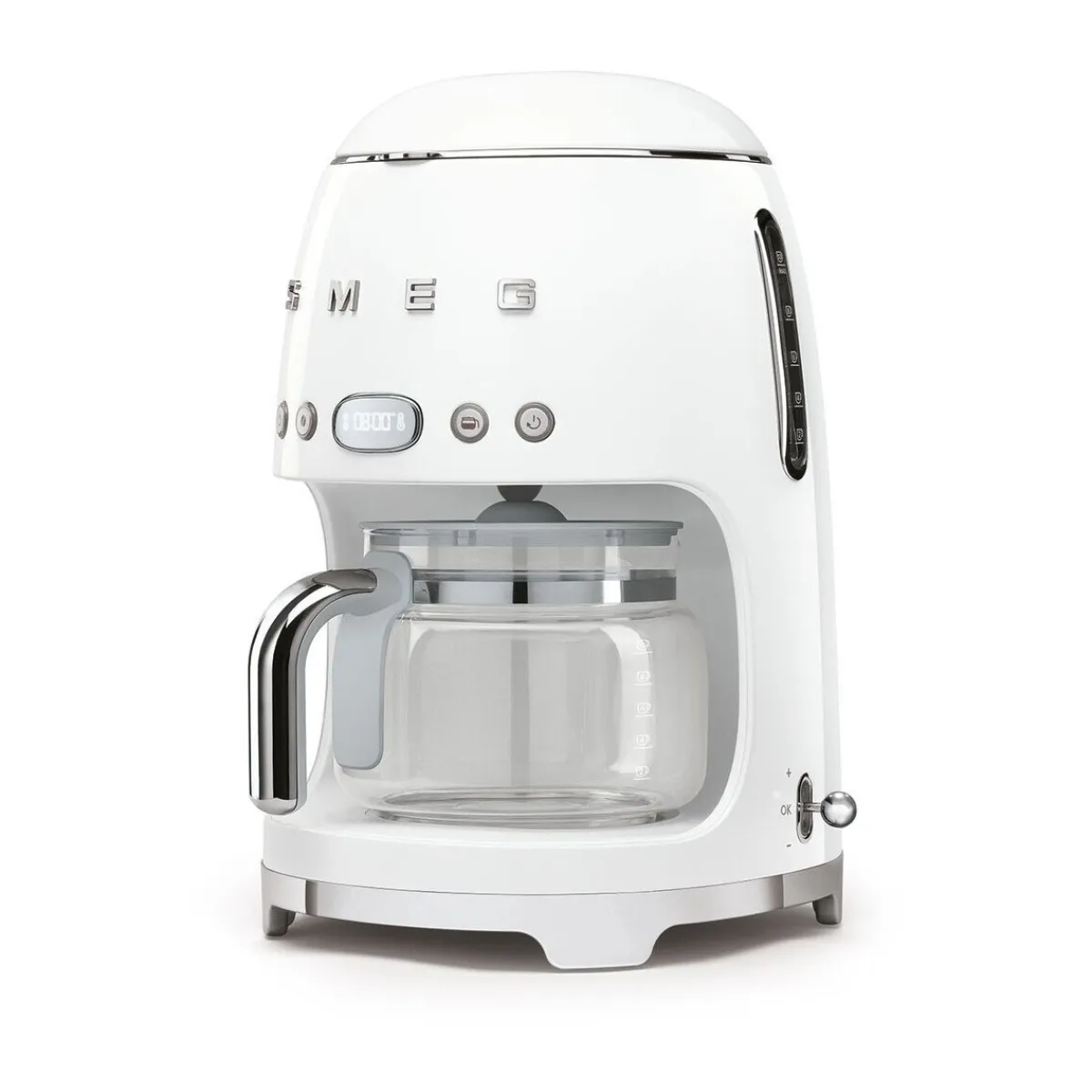 Mit der charmanten Retro-Kollektion setzt der italienische Hersteller voll auf Design im 1950er-Jahre-Stil. Runde Formen, poppige sowie softe Farbtöne machen Toaster, Küchenmaschine, Kaffeemaschinen und Co. zu stylishen Hinguckern in der Küche. So ist auch die Filter-Kaffeemaschine DCF02 aus der 50’s Style Kollektion ein sehr hübscher Anblick.Mit einem Wassertank, der bis zu 1,4 Liter fassen kann, können Sie problemlos bis zu 10 Tassen Filter-Kaffee zubereiten. Der eingebaute Timer ermöglicht es Ihnen, bereits abends alles vorzubereiten, so dass Sie morgens vom Kaffeeduft geweckt werden.