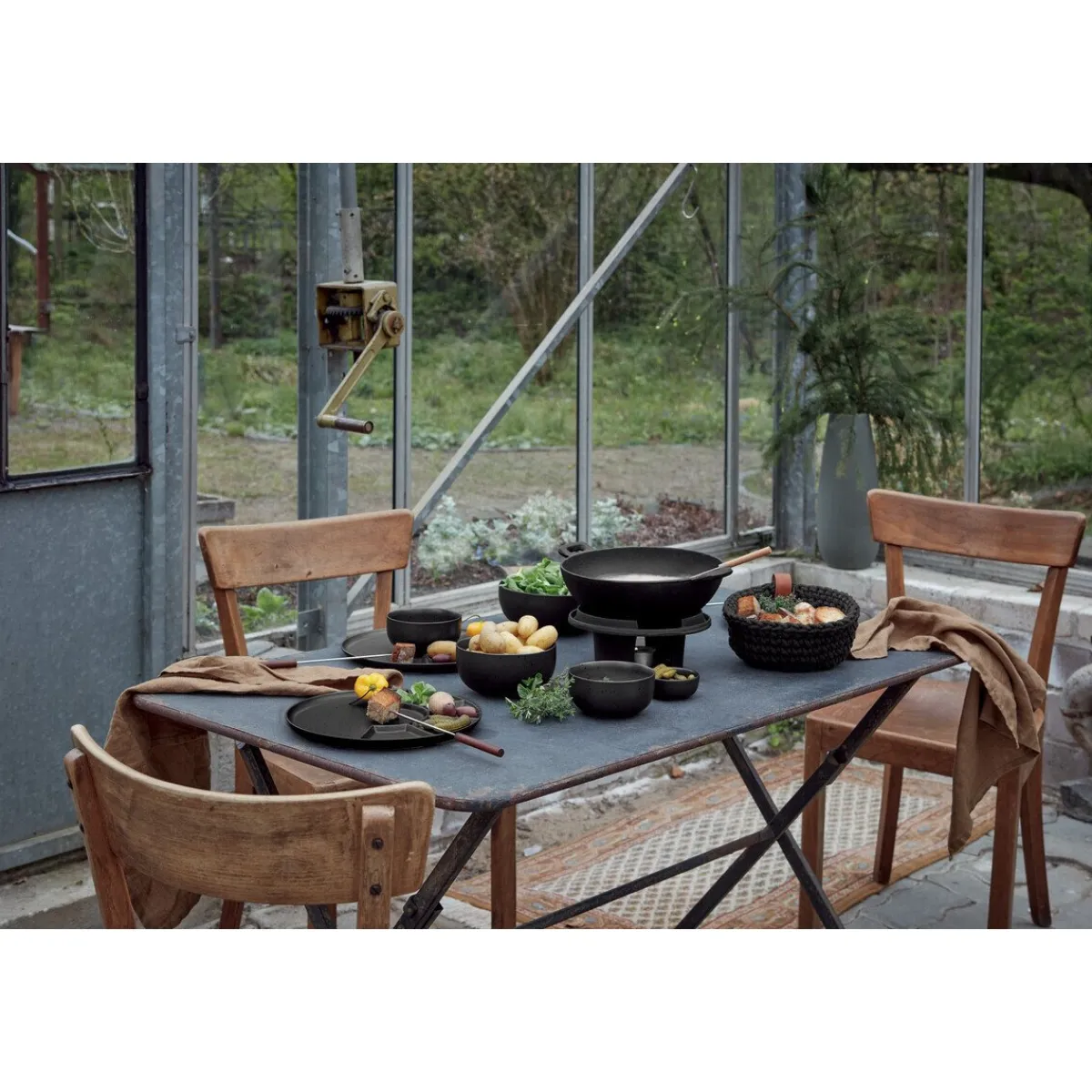 Der Fondueteller Coppa Kuro von eignet sich mit seinen Unterteilungen für Fondueabende, Grillpartys oder Antipasti-Vorspeisen. Mit seinem mattierten Look und seinen einzigartigen Facetten wirkt der Teller auf der Tafel einladend und verführerisch. Die Mattierung des Porzellans kann durch die Nutzung von Besteck zarte silberne Spuren erhalten. Genießen Sie die Gemeinschaft bei einem guten Essen mit diesem Geschirrstück.