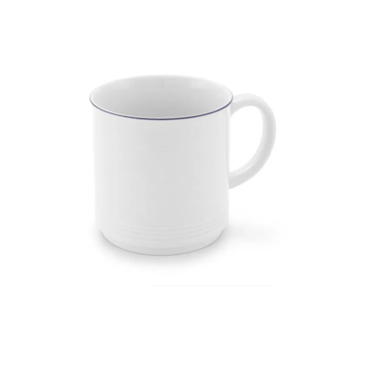 Mit dem Henkelbecher Jeverland Kleine Brise von bringen Sie einen maritimen Hauch auf Ihre Tafel. Das weiße Porzellan wird von einem filigranen Relief belebt, das sich kreisförmig um den unteren Teil des Bechers zieht, und mit einer Kontur in Blau abgeschlossen, die den sanften Charme des Ozeans repräsentiert. Servieren Sie Ihre Heißgetränke in diesem dezenten Geschirrstück.
