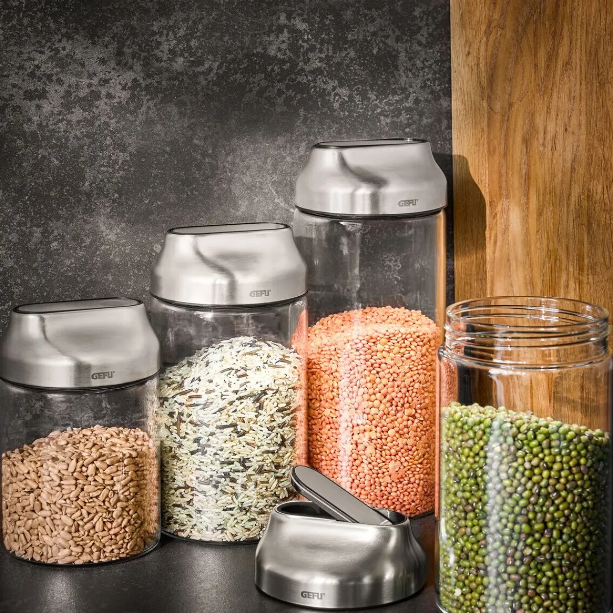 Die Vorratsdosen Kippo von lassen sich zur Aufbewahrung und zum Frischhalten Ihrer trockenen Lebensmittel hervorragend nutzen. Haferflocken, Mehl, Nudeln oder Reis – all diese Lebensmittel lassen sich in diesen praktischen Dosen ideal sortieren und lagern. Bringen Sie mit diesen Aufbewahrungsdosen Ordnung in Ihren Küchenschrank.