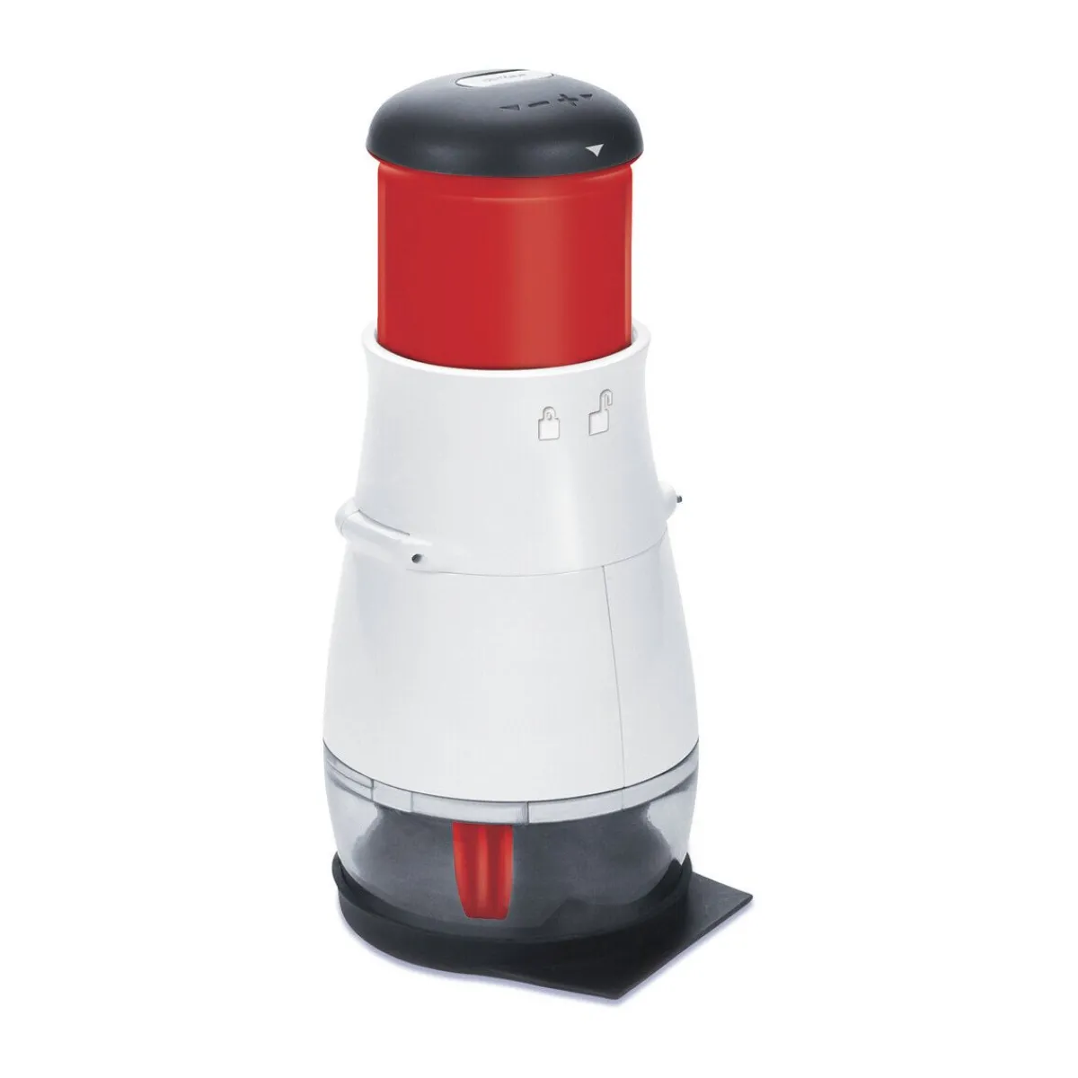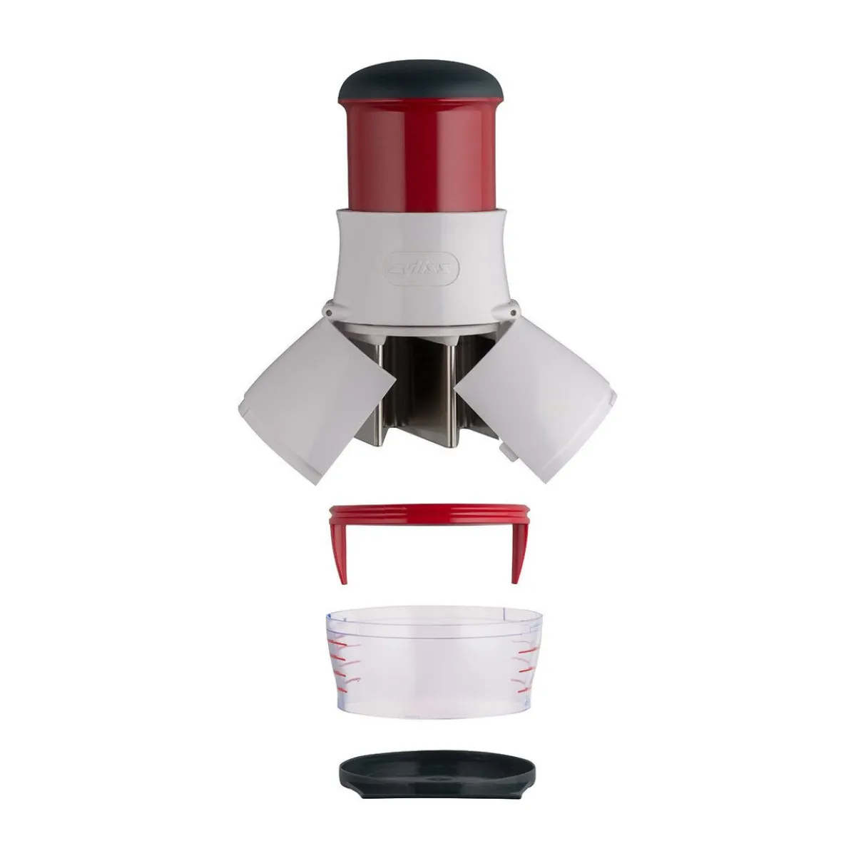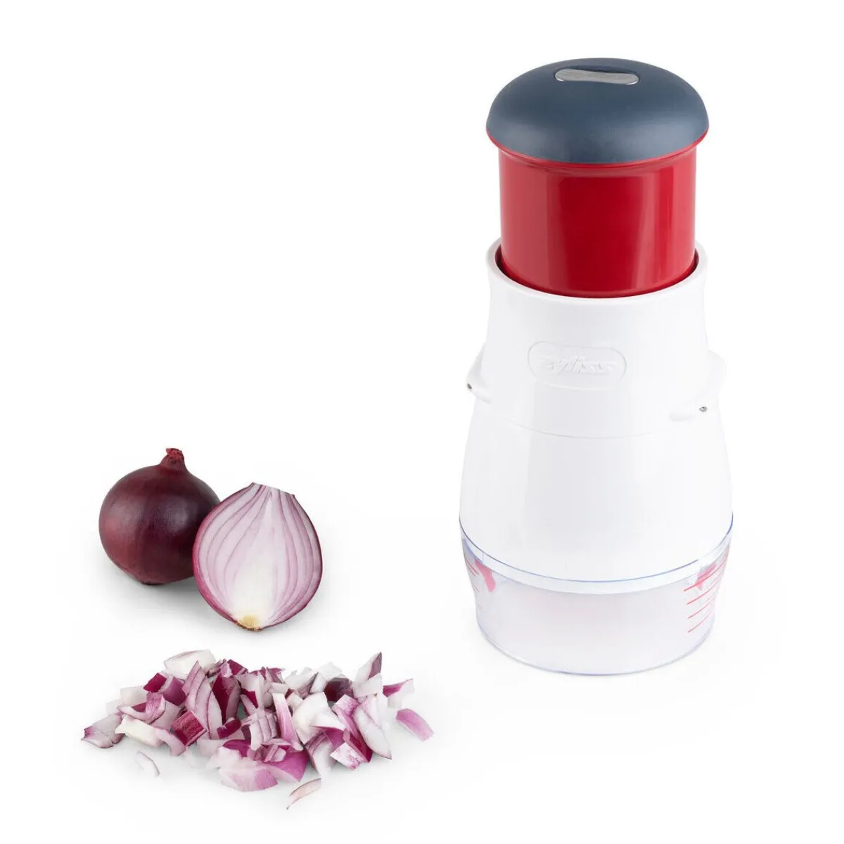 Mit dem Gemüsehacker Zick-Zick2 von hacken Sie Ihr Lieblingsgemüse in Windeseile klein. Die rasiermesserscharfe Klinge rotiert bei jedem Kolbendruck und sorgt für ein gleichmäßiges Hack-Ergebnis. Egal, ob Zwiebeln, Karotten oder Gurken – dieser leistungsstarke Lebensmittelzerkleinerer haut rein.