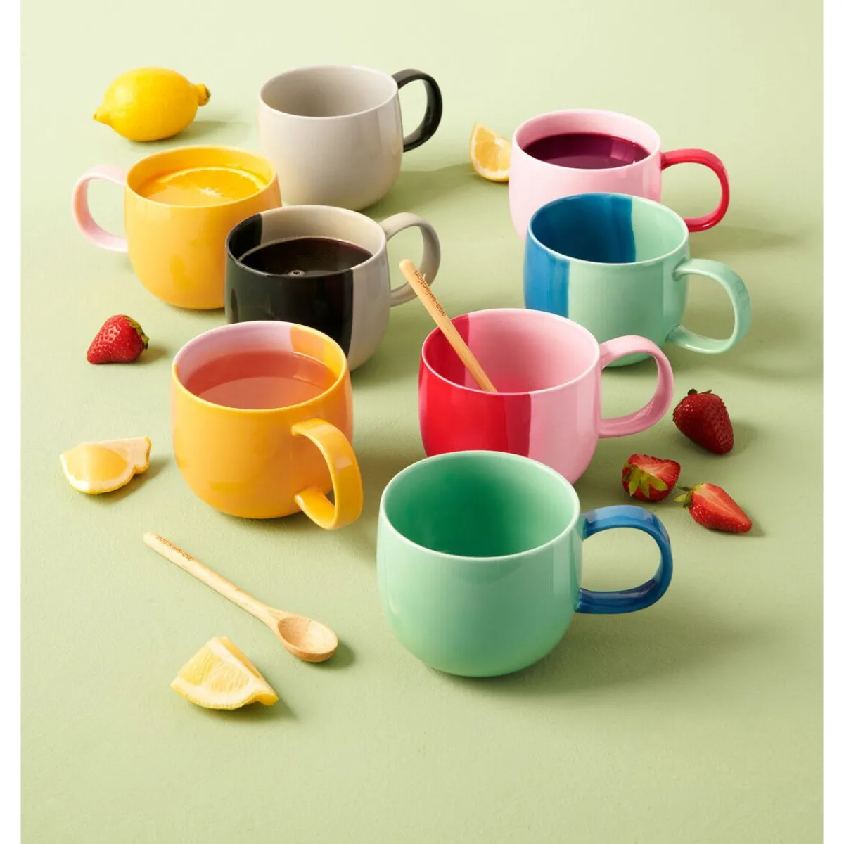 Mit dem Henkelbecher Joy Blueberry Smoothie von starten Sie farbenfroh in den Tag. Aus ihm lassen sich Shakes, Tee, Desserts und Kaffee genießen, während der Becher auf der Tafel ganz nebenbei für Farbe sorgt.
