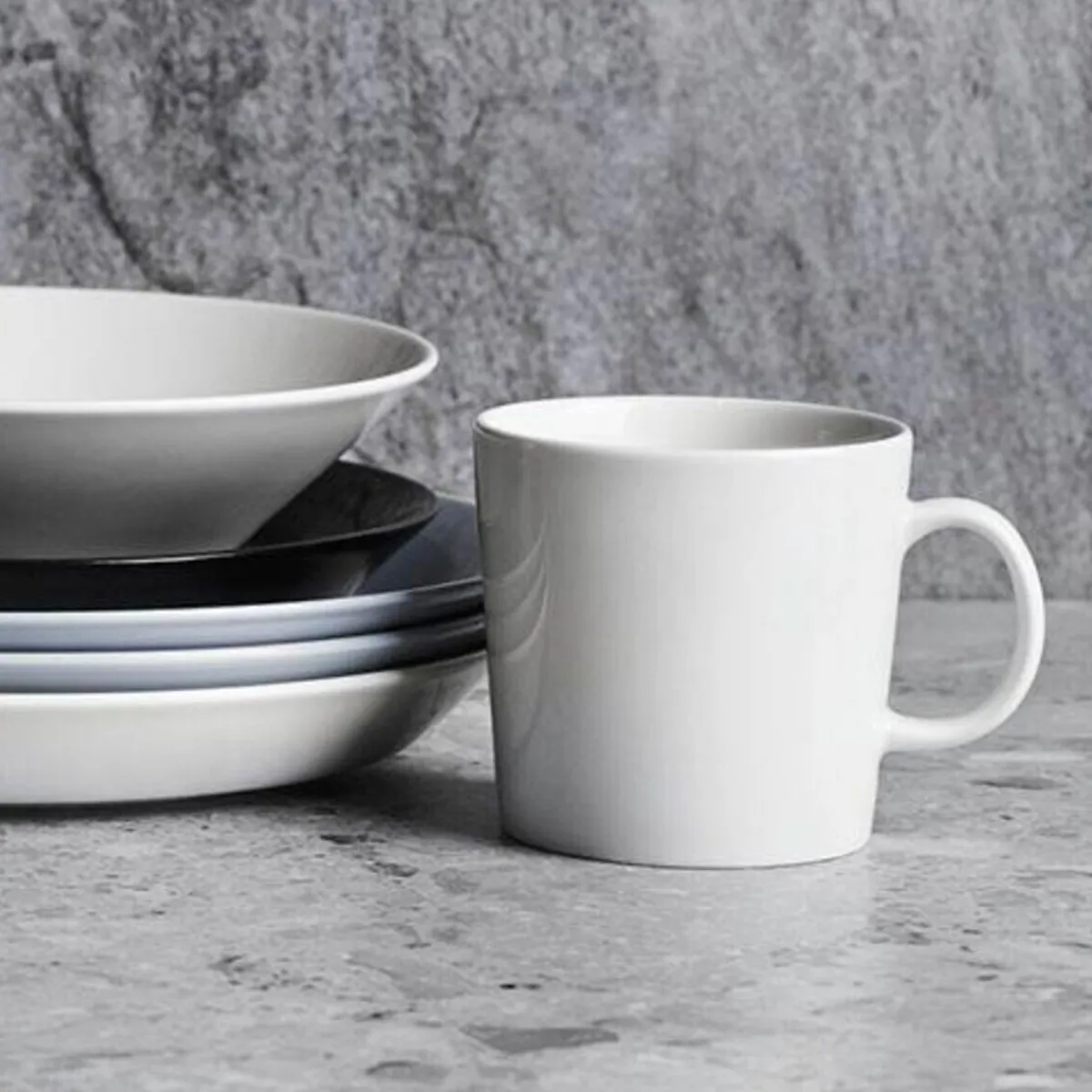 Der hohe Henkelbecher ist nur eines der vielen Geschirrteile aus der Kollektion Teema von , die sich an nur drei geometrischen Formen orientiert – Kreis, Quadrat und Rechteck. Die besonders vielseitige Kollektion, die aus der Feder des legendären finnischen Designers Kaj Franck stammt, ermöglicht zahllose Kombinationen aus unterschiedlichen Formen, Größen und Farben. Jedes einzelne Stück – Tasse, Teller, Platte oder Schale – verkörpert den Charme skandinavischen Designs.