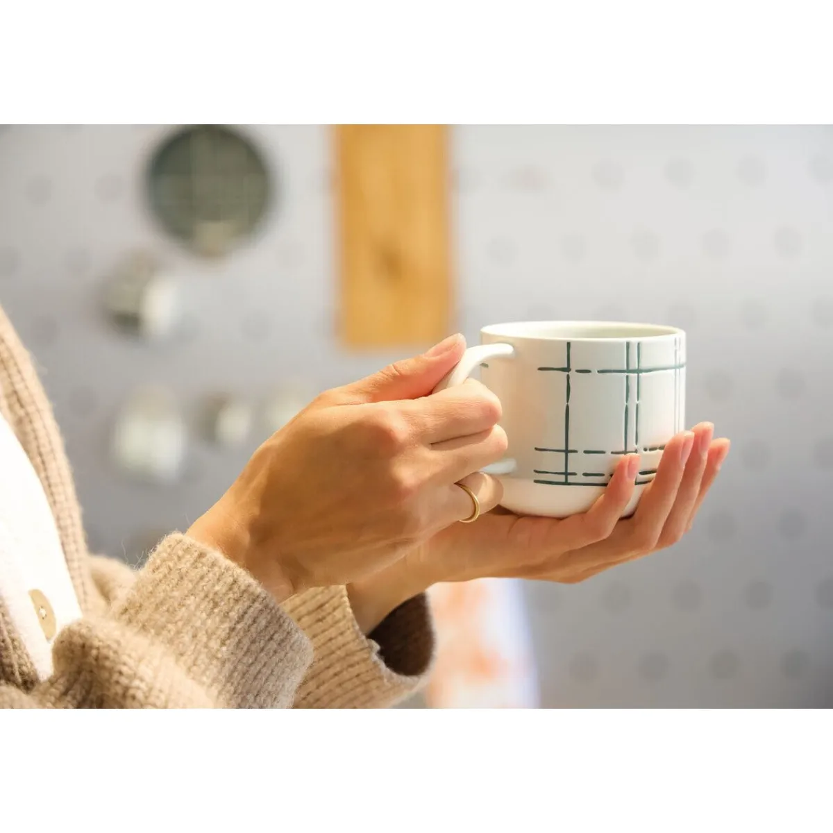Mit dem Henkelbecher Fun Karo light von servieren Sie heiße Schokolade, Tee oder Kaffee mit dem strukturierten Charme von Karos. Die reliefartigen Linien, die mal dünner und mal dicker zum Vorschein kommen, wirken wie von Hand gezogene Pinselstriche und verleihen dem Stück einen verführerischen Handmade-Charakter. Zaubern Sie mit diesem Becher ein beeindruckendes Tischbild.