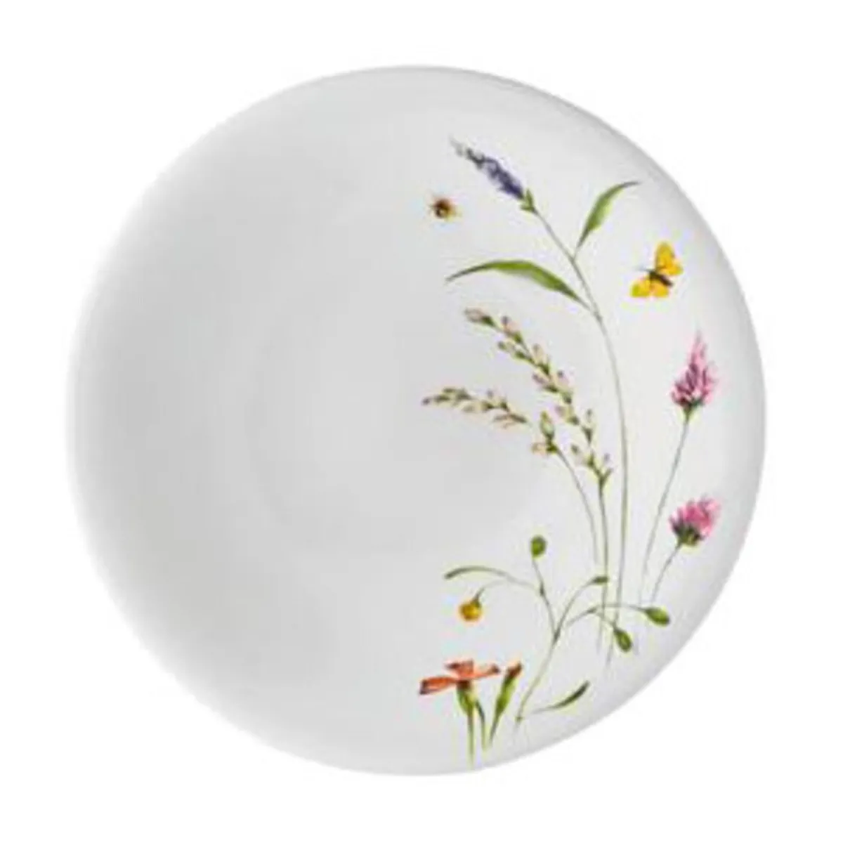 Im flachen Teller der Serie Nora Spring Vibes von servieren Sie Speisen aller Art untermalt von filigranen Frühjahrsblühern.