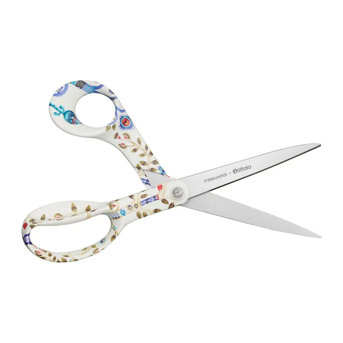 Die ergonomisch geformte Schere Taika von bringt durch ihre farbenfrohe Musterung, die schönen Zierelemente und die geschwungenen Ornamente einen Hauch Magie in Ihre Hände. Dieser hinreißende Look wird durch eine hohe Schneidleistung und eine maximale Schärfe abgeschlossen, wodurch Sie Ihre Schneidearbeiten ganz entspannt angehen können. Werden Sie mit dieser Universalschere kreativ.