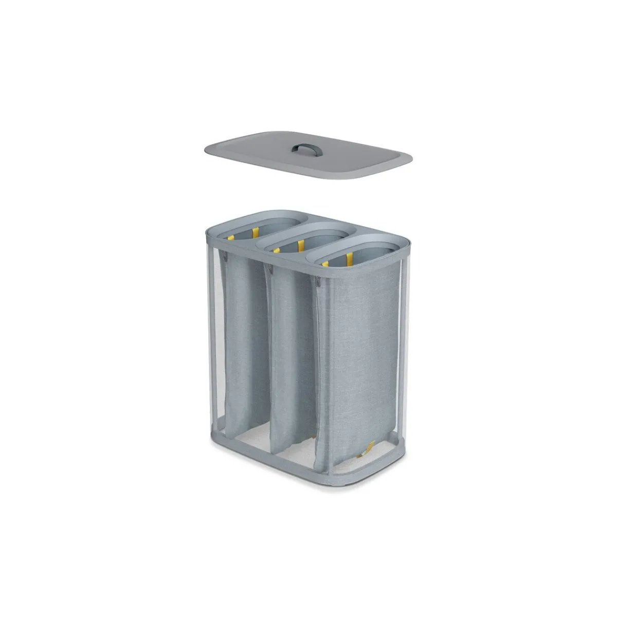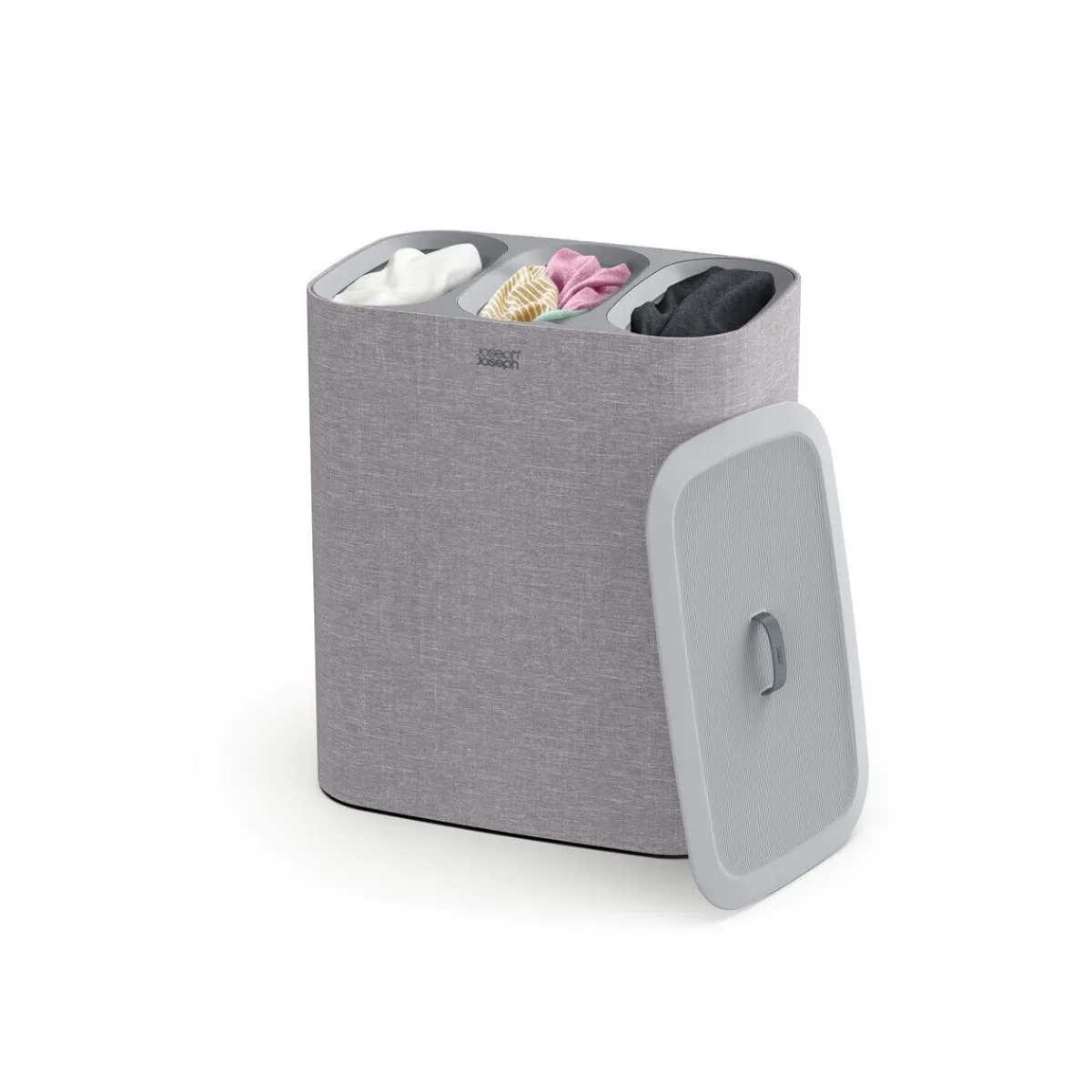 Mit dem praktischen Wäschetrennkorb Tota Trio von haben Sie das Sortieren Ihrer Wäsche gut im Griff. In drei herausnehmbaren Tragebeuteln lassen sich dunkle und helle Wäsche sowie Kochwäsche perfekt voneinander trennen und sobald es nötig ist zur Waschmaschine transportieren.