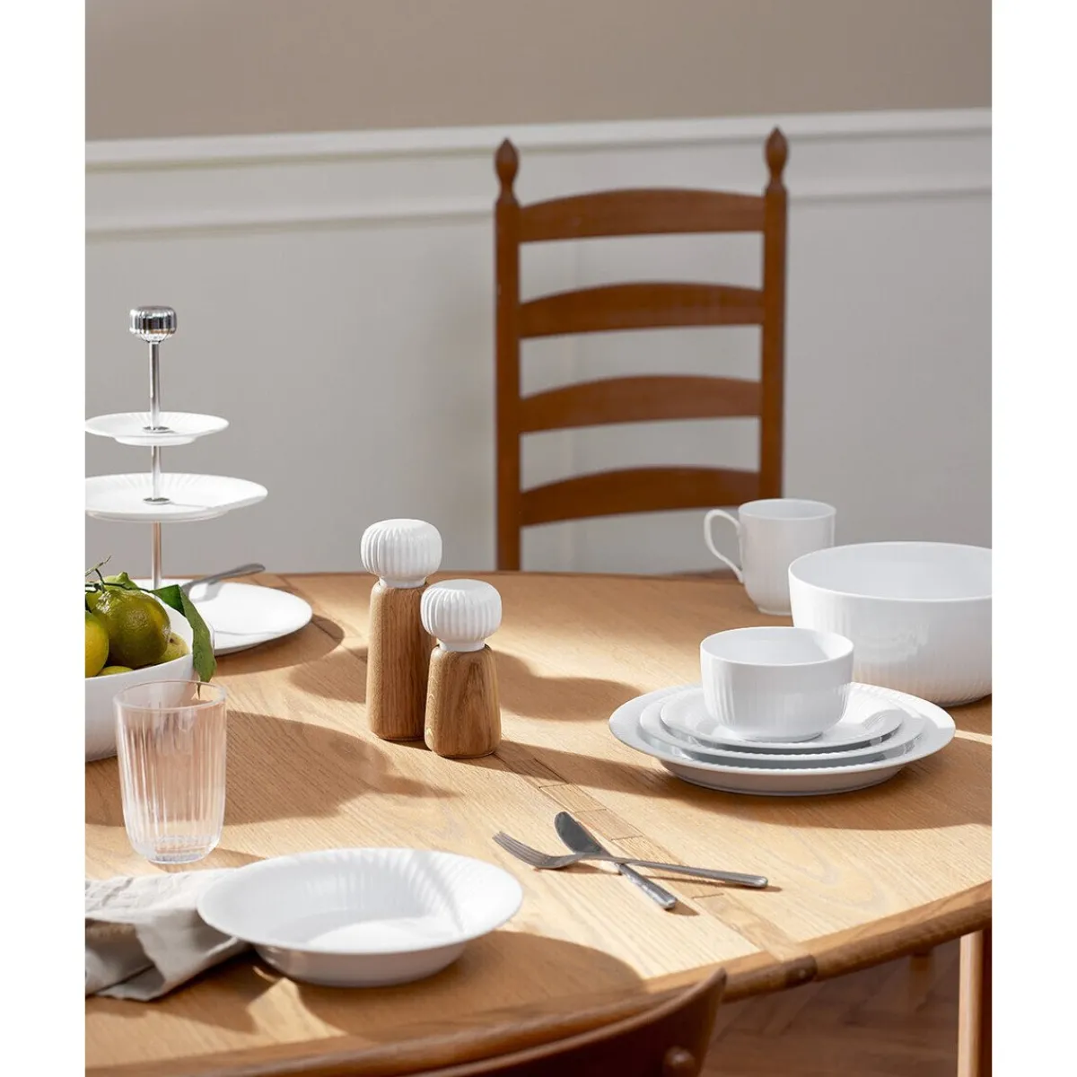 Der Teller Hammershoi von überzeugt durch seine puristische Ausgestaltung und sein klares Weiß. Durch das feine Rillenrelief, das sich zur Mitte hin verjüngt, erhält der Teller eine elegante Note, die zu festlichen Anlässen passt, aber auch im Alltag begeistert.