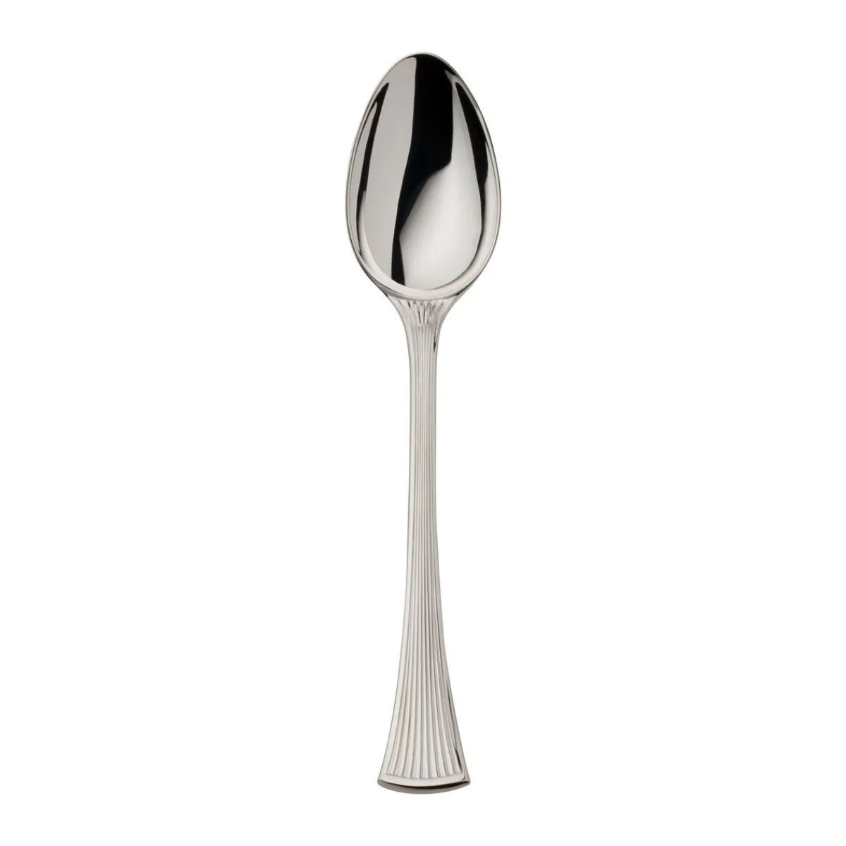 Auf keiner Kaffeetafel sollte der elegante Kaffeelöffel aus der Serie Avenue des Herstellers Robbe & Berking fehlen. Es handelt sich um einen hochwertigen Löffel, der versilbert und glänzend poliert ist. Mit nur 150 g ist er besonders leicht und handlich. Der 13 cm lange und 2,7 cm breite Kaffeelöffel verfügt über ein romantisches Design und hat aufgrund des geriffelten Endstücks des Griffs einen hohen Wiedererkennungswert. Zudem erweist er sich als widerstandsfähig, hitzebeständig und spülmaschinenfest. Der Hersteller gibt eine Nachkaufgarantie bis 2040.