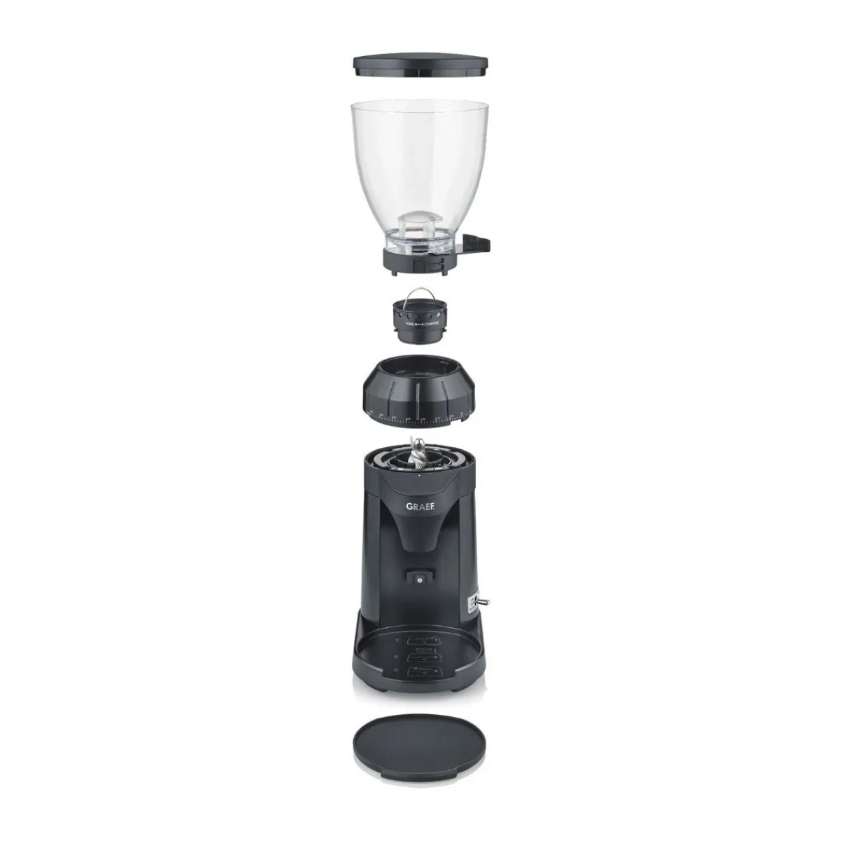 - 40 Mahlgrade lassen sich von fein (Espresso) bis grob (French Press oder Aero Press) über den Einstellkragen auswählen