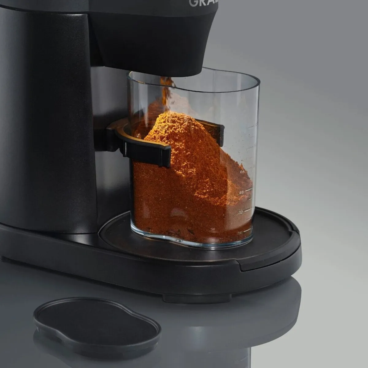 - mit einem Edelstahl-Kegelmahlwerk, das für ein aromaschonendes Mahlen langsam läuft