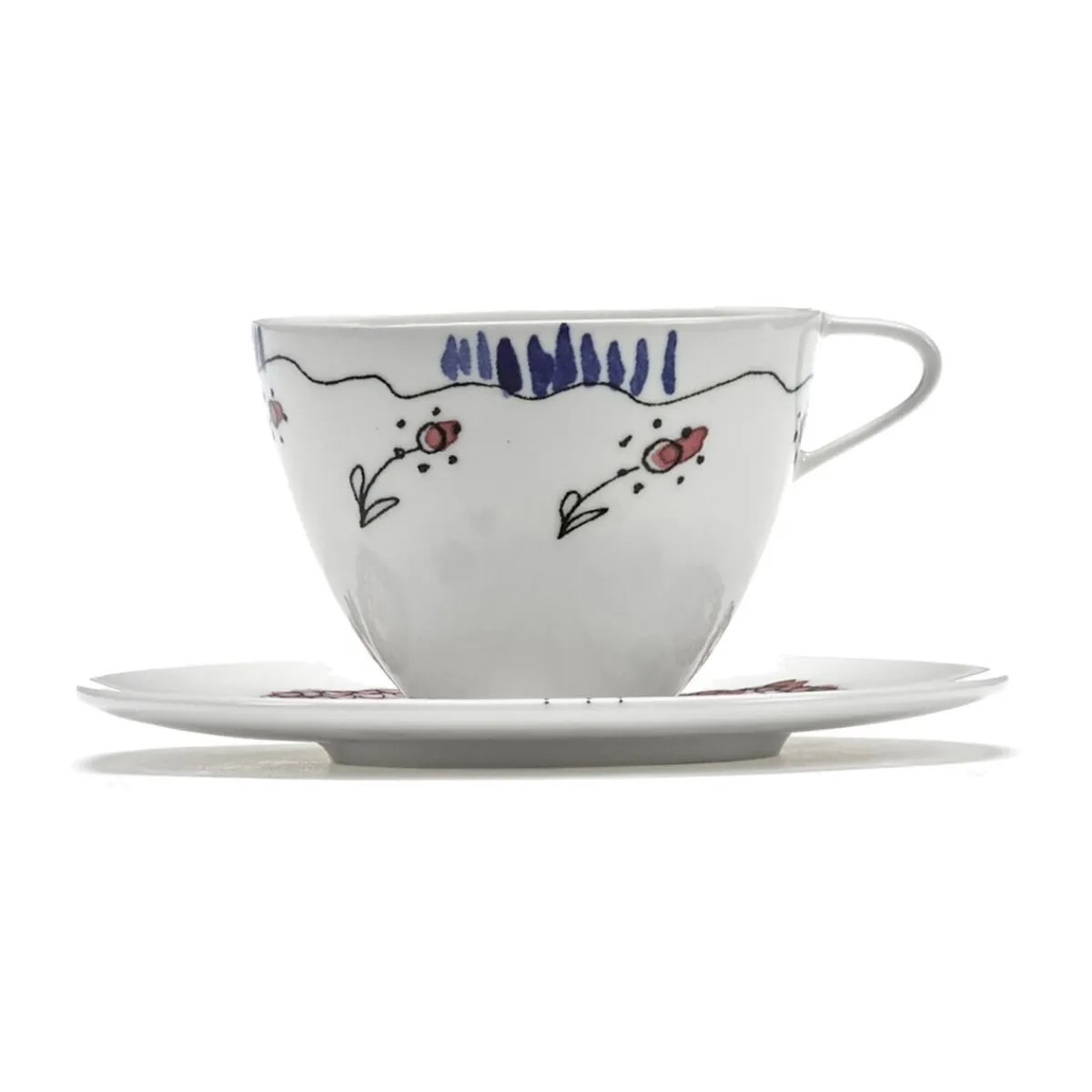 Die Kaffeetasse mit Untere Midnight Flowers Anemone Milk Mauve von ist mit handgemalten Anemonen verziert, die dem weißen Bone China Leben einhauchen. Kreieren Sie mit diesen Geschirrstücken eine hübsche Blumenwiese mitten auf Ihrer Tafel.