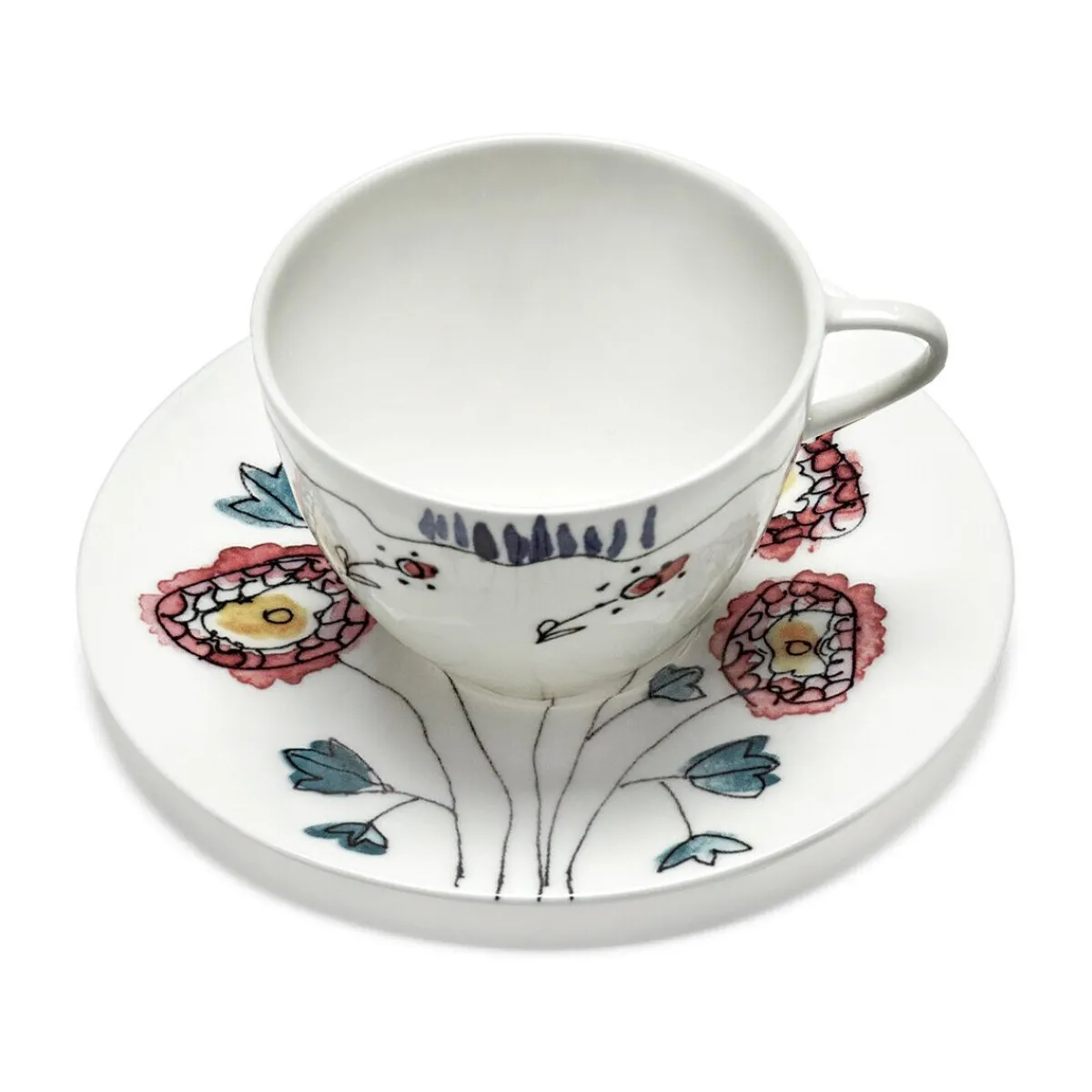 - Kaffeetasse mit Untere Midnight Flowers Anemone Milk Mauve aus Bone China