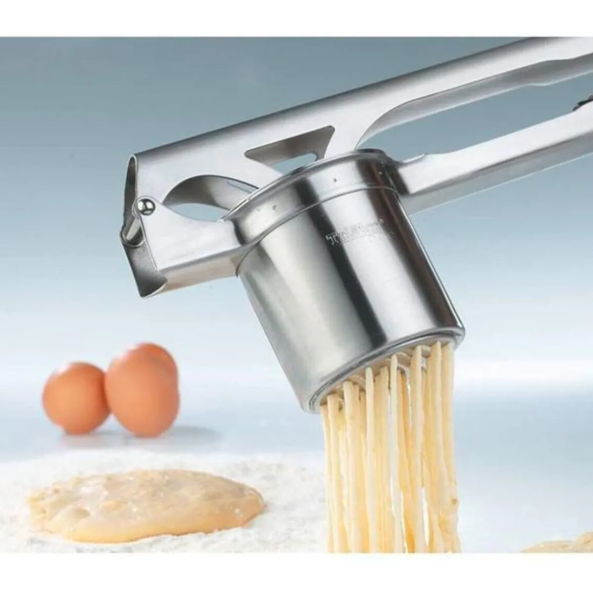 Ob nun beim Pürieren von Kartoffeln und Gemüse, beim Pressen von echten schwäbischen Spätzle oder beim Zubereiten von leckerem Spagettieis wie in der Gelatiere – die Spätzlepresse Tri Star® von mit ihren drei austauschbaren Lochscheiben weiß zu überzeugen. Einfach die Presse befüllen, den starken Presshebel herunterdrücken und genießen. Anschließend lassen sich die Lochscheiben bequem herauslösen und die gesamte Presse in der Spülmaschine reinigen.