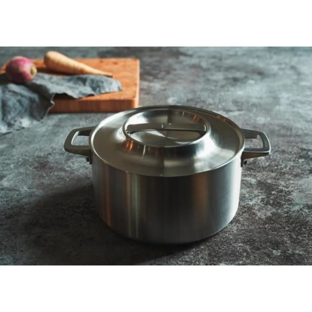 Diese voluminöse Kasserolle aus der Serie Norden von eignet sich hervorragend zur Zubereitung von Gerichten mit einem hohen Flüssigkeitsanteil. Das mehrlagige Design des Bodens verteilt die Wärme gleichmäßig bis zu den Rändern und gewährleistet homogene und gesunde Ergebnisse.