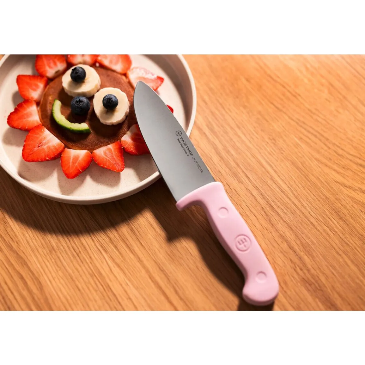 - mit einer abgerundeten Spitze und reduzierter Schärfe im Vergleich zum Kochmesser für Erwachsene