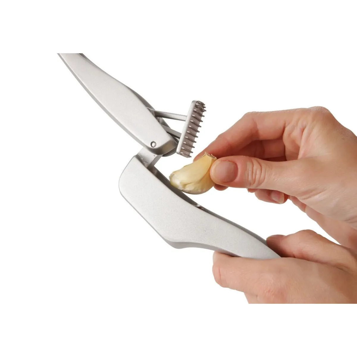 - der großzügige Trichter erlaubt das Pressen von mehreren Zehen gleichzeitig