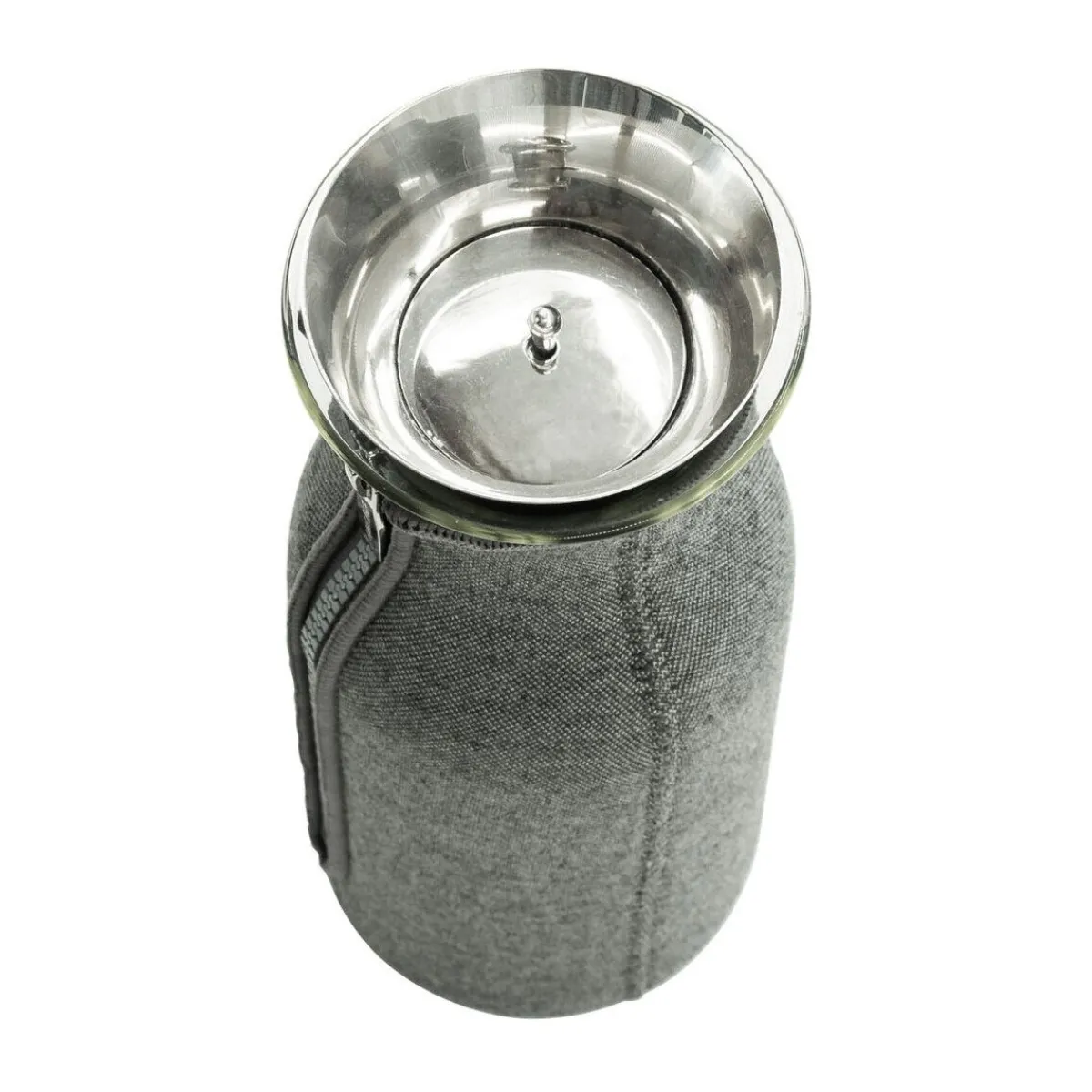 Hochwertig, praktisch und jederzeit zur Hand – die edle Kühlschrankkaraffe Dark Grey von ist in einem modernen, grauen Anzug gekleidet, der die Getränke wärmt und kühlt.