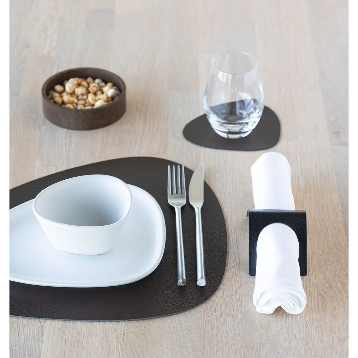 Das Tischset Curve Serene von kommt in einem dunklen Braun daher, das sich zum Setzen erdender Kontraste auf der Tafel hervorragend eignet. Mit seiner soften, flexiblen Textur fühlt sich das Set angenehm an, ist aber dennoch fest genug, um Ihre Oberflächen vor Verschmutzungen zu schützen und für einen verführerischen Look zu sorgen. Bringen Sie mit diesem Tischset einen einladenden Charme in Ihr Arrangement.