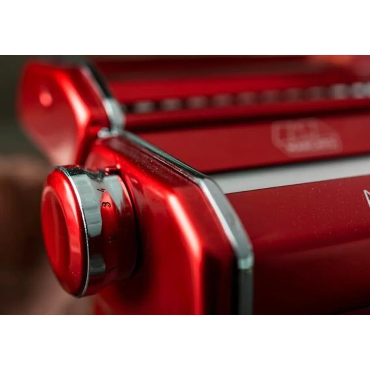 Die strahlende Nudelmaschine Atlas 150 Design von ist mit ihrer roten Farbgebung ein echter Hingucker und bringt nicht nur optisch das Temperament der Italiener in Ihr Zuhause. Mit dieser pfiffigen Konzeption stellen Sie im Handumdrehen Pasta mit einer rauen Oberfläche her, die den Geschmack Ihrer Gewürze und Saucen besonders gut aufnimmt und das mediterrane Feeling verstärkt.