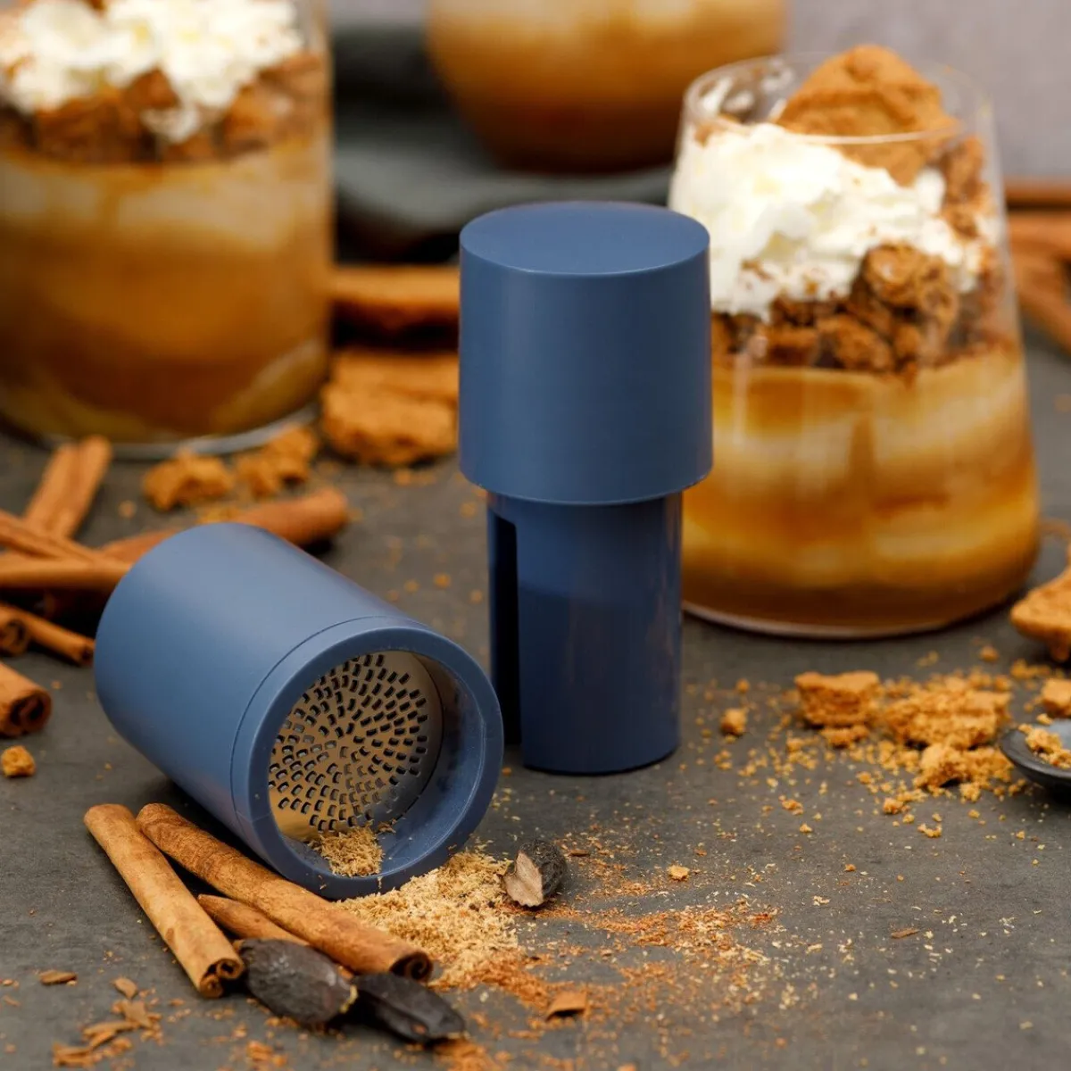 Mit der Gewürzmühle 2in1 Speciality Denim Blue von lassen sich harte Muskatnüsse oder Tonkabohnen kräfteschonend reiben und blickfangend aufbewahren. Dazu einfach den Deckel abnehmen und das Gewürz hineinlegen, dann festdrücken und im Uhrzeigersinn drehen – schon veredeln Sie Ihre Speisen mit einem Plus an Aroma.