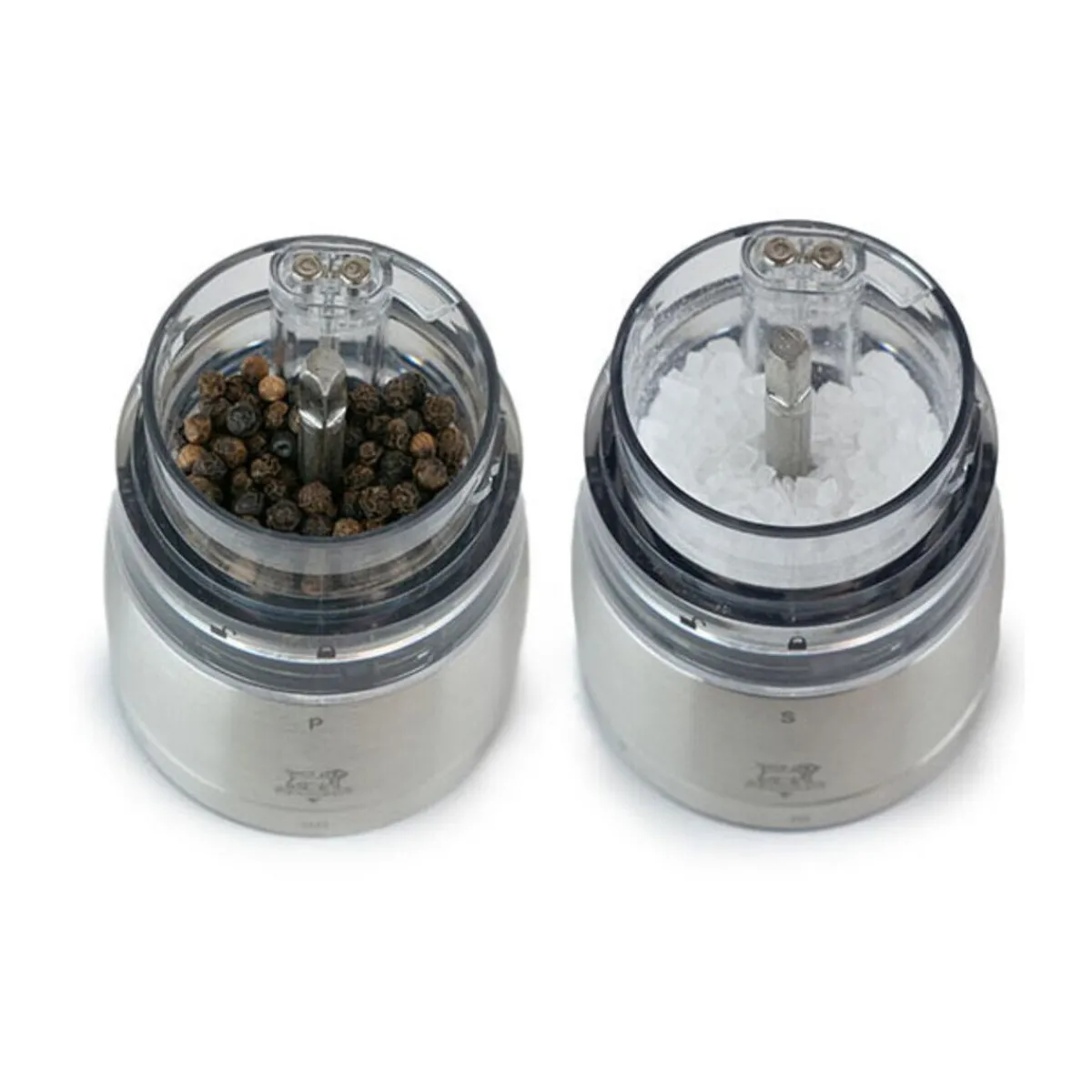 - der klare Behälter macht ersichtlich in welcher Mühle Salz und in welcher Mühle Pfeffer ist