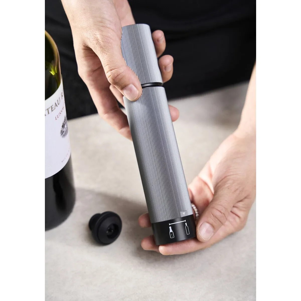 Die Vakuumpumpe Line Preserve Duo von ist ein pfiffiges 2in1-Tool, das sich zum Frischhalten von Wein sowie Sekt nutzen lässt. Egal, welche Flasche Sie öffnen, mit der Vakuumpumpe erhalten Sie die Aromen, die Qualität und die Perlage Ihrer Getränke für mehrere Tage. Sorgen Sie für einen spritzigen und vollmundigen Genuss über einen längeren Zeitraum hinweg.