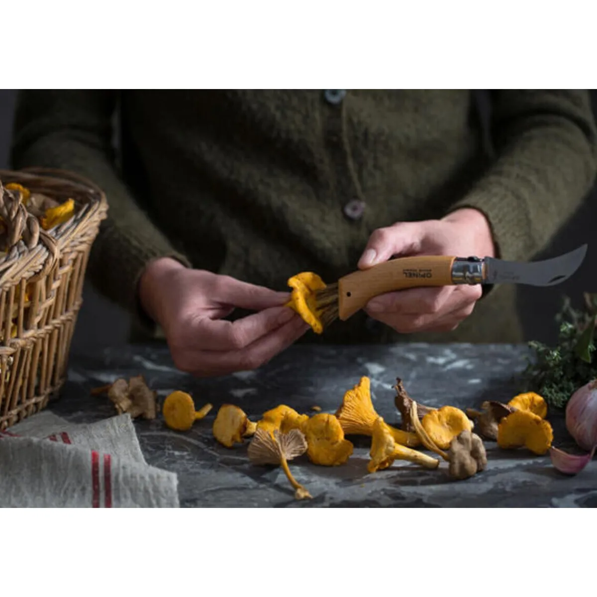 Das Pilzmesser N°08 von ist die optimale Unterstützung beim Sammeln von Riesenschirmlingen oder Wiesen-Champignons. Pilze aller Art lassen sich mit der gebogenen Klinge leicht abschneiden, während kleine Zacken am Messerrücken und feine Borsten am Griffende das Säubern der Pilze erleichtern.