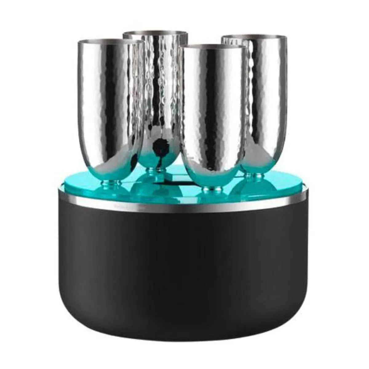 Die Champagner Box aus der Serie Martelé von wird in nur wenigen Sekunden zum Herzstück der Tafel. Der brillierende Glanz, der vom Inneren ausgeht, breitet sich in facettenreichen Nuancen schnell in Ihrem Ambiente aus. Die Box und die vier Kelche bieten einem hochwertigen Champagner genau die Bühne, die er verdient.