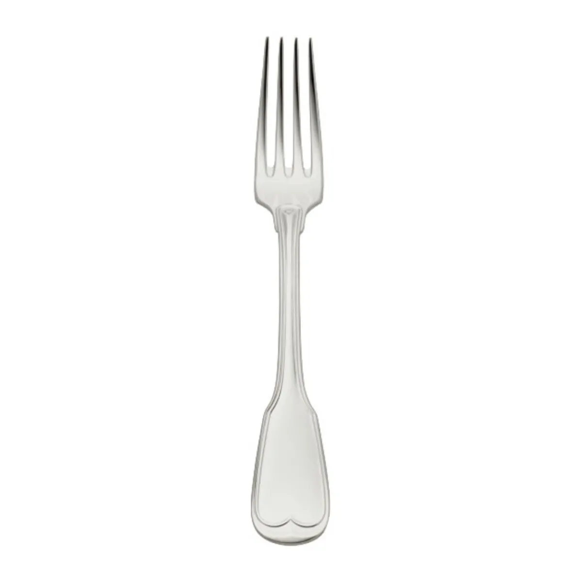 Mit diesem Besteck kann herrschaftlich getafelt werden. Die klassische Menügabel aus dem Hause Robbe & Berking besticht durch ihre grazile Fadenform. Sie besitzt eine Länge von 19,7 cm und ist 2,6 cm breit. Die spülmaschinenfeste Gabel wurde aus echtem Sterlingsilber gefertigt und gehört zur Serie Alt Faden 925 Sterlingsilber. Sie verfügt über eine hübsche Prägung, ihre Oberfläche wurde sorgsam poliert. Die Besteckgabel gehört zur ersten Wahl, wobei eine Nachkaufgarantie bis zum Jahre 2040 gegeben ist.