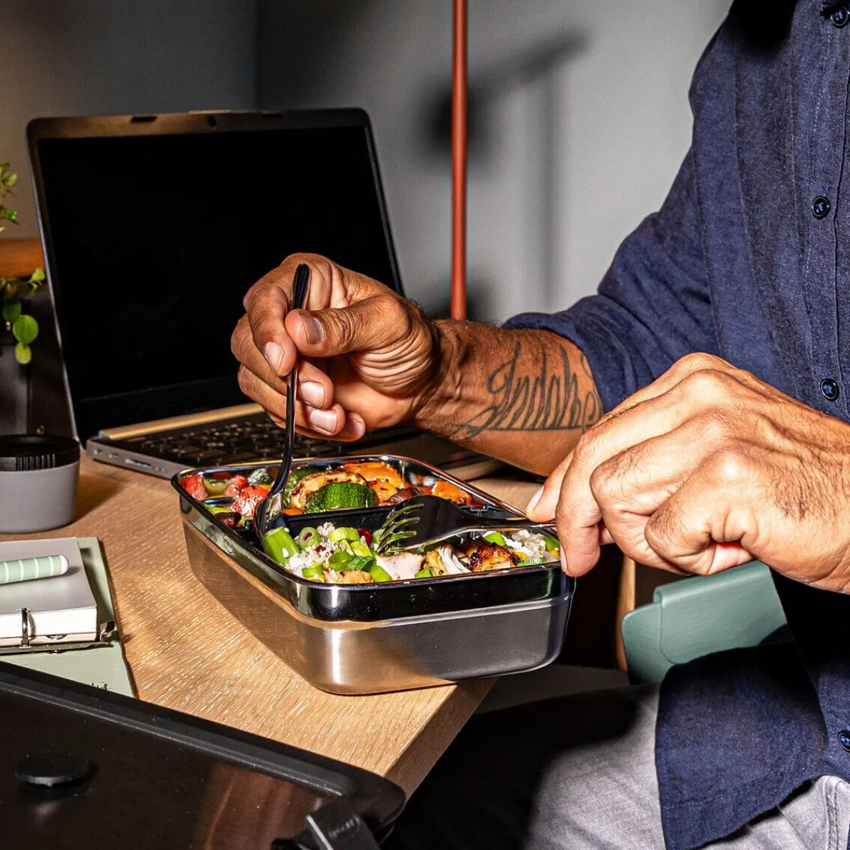 - raffinierter Trennsteg Flexx 2Go passend zur eckigen Dose mit 1,5 l Inhalt