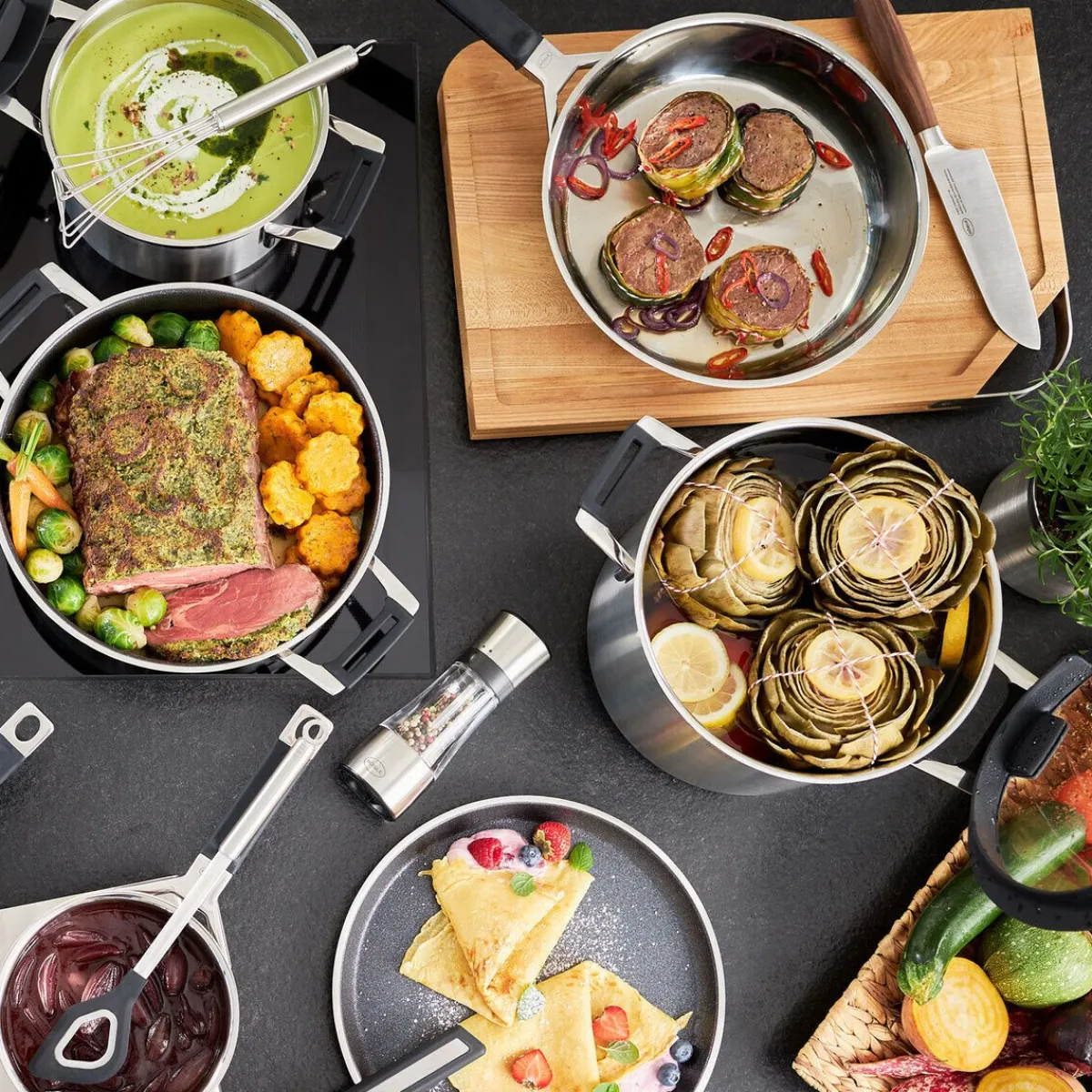 - Griff mit hochwertiger Silikonummantelung und cleverer Ablagemöglichkeit für Ihre Küchenhelfer
