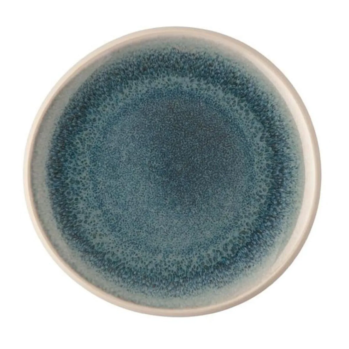 Das Design des flachen Tellers der Serie Junto Aquamarine von ist so individuell, dass man sich nie daran satt sehen kann.