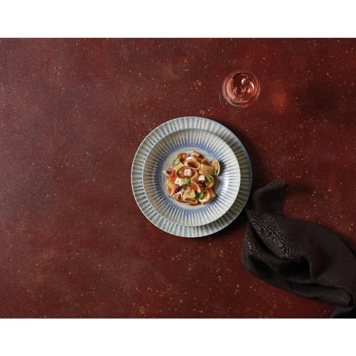Der flache Teller Sunlight Blue von kommt mit einer natürlichen Ausstrahlung daher, die durch ein Dekor aus blauen Streifen und Schattierungen belebt wird. Vorspeisen, Brötchen oder Kuchenstücke werden durch das Dekor liebevoll in den Mittelpunkt gestellt und einladend umspielt. Bringen Sie mit diesem Stück einen Hauch Authentizität auf den Tisch.