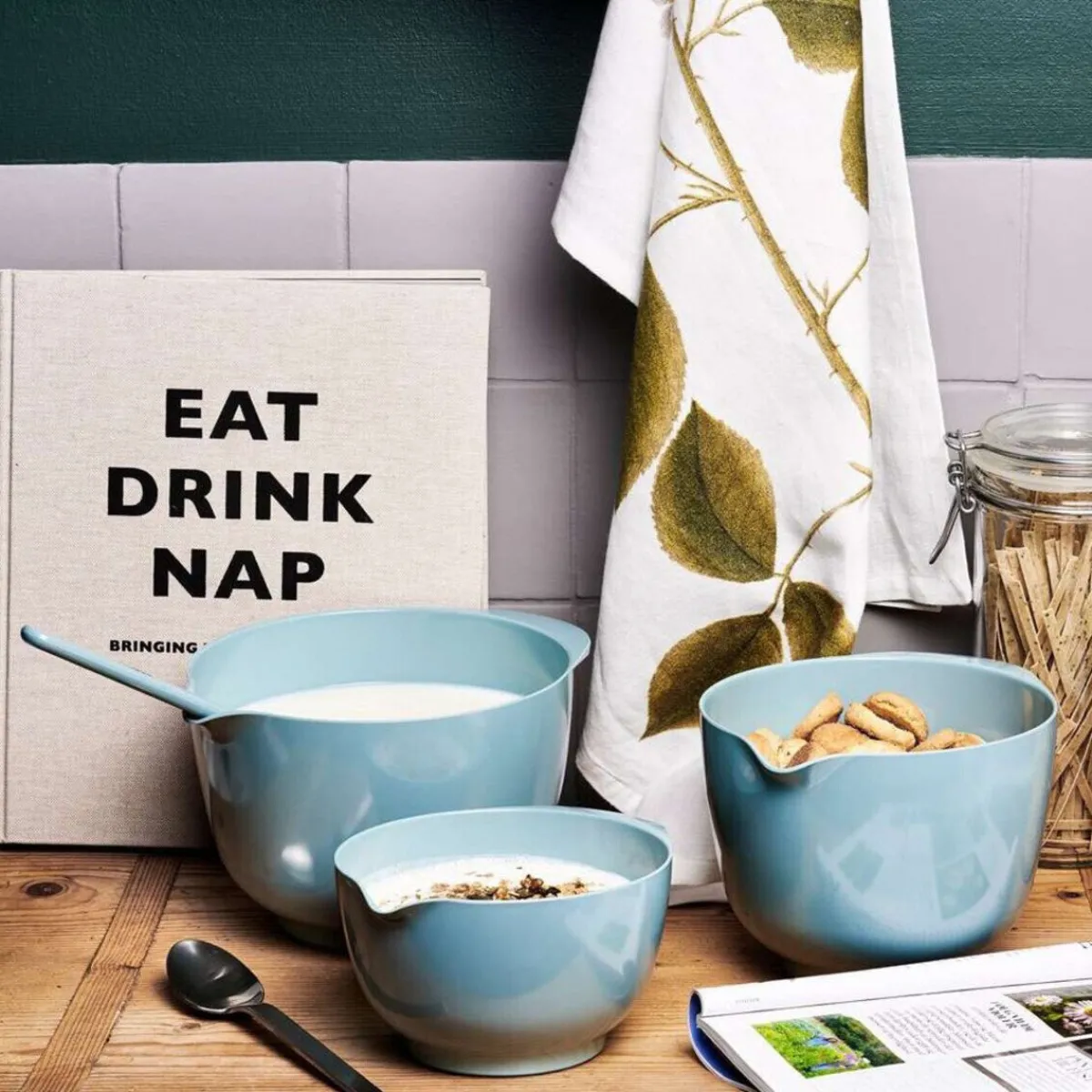 In der Rührschüssel Margrethe Nordic Green von kneten und mischen Sie Ihre Teige einfach und rutschsicher. Ob auf der Arbeitsfläche abgestellt oder sicher in der Hand liegend, in dieser Schüssel wird das Rühren und Zubereiten zu einem mühelosen Unterfangen.