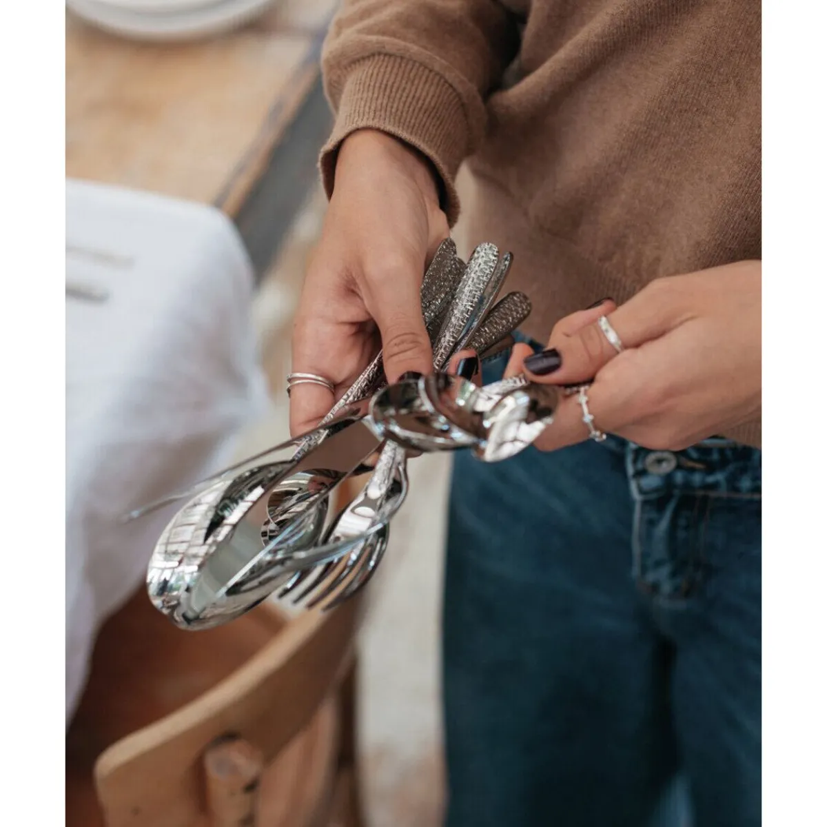 Mit dem Besteck-Set Venezia Mirror Stahl von setzen Sie auf Ihrer Tafel verführerische Akzente, die an den letzten Urlaub erinnern und einen modernen, reizvollen Charme versprühen. Das filigrane Relief zieht sich über den gesamten Griff und schmeichelt den Fingern.