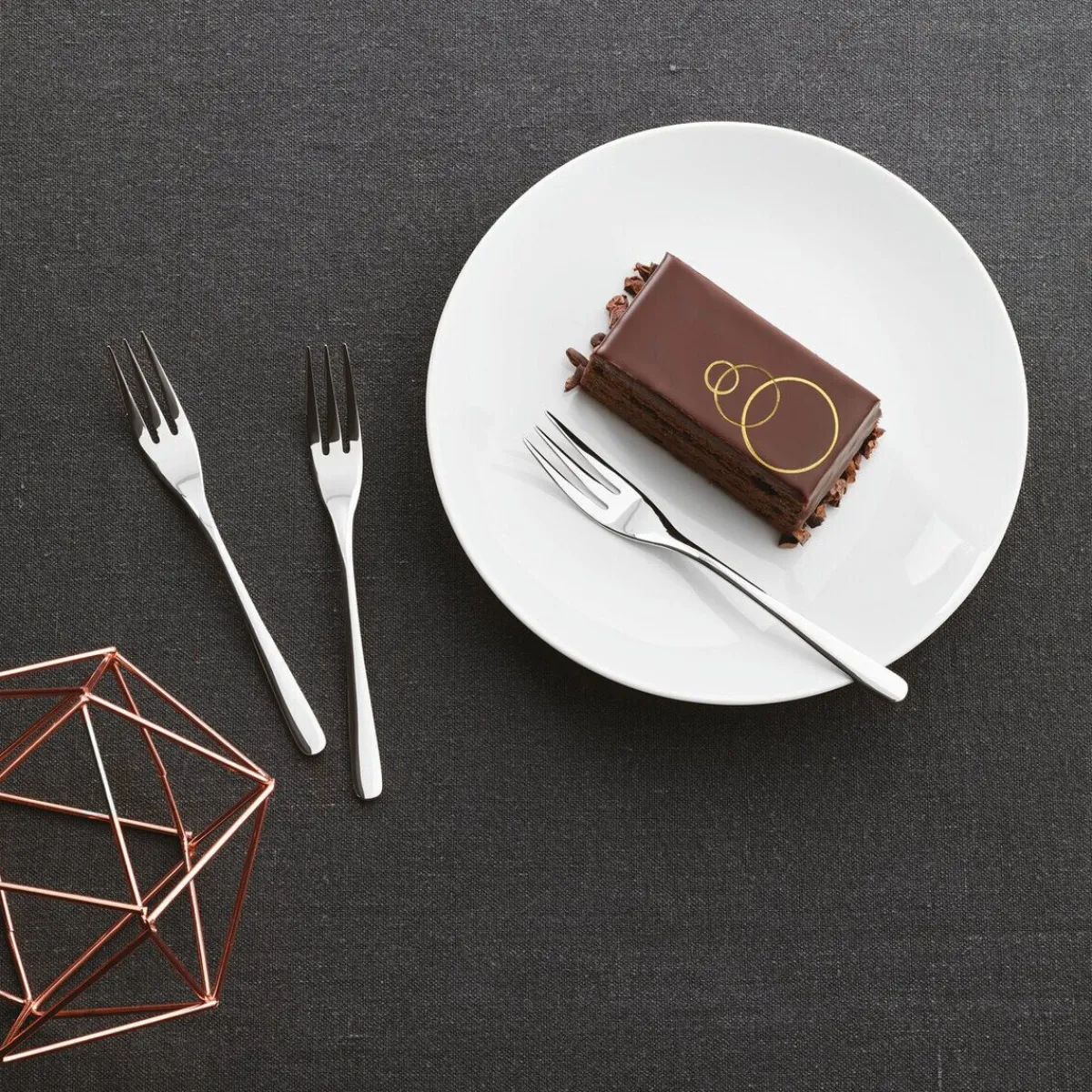 Mit dem Kuchengabel-Set aus der Serie Taste Mirror Stahl von steht einer süßen Pause mit Freunden oder der Familie nichts mehr im Weg. Die Tropfenform der Stiele macht sich nicht nur optisch gut, sie schmeichelt auch den Händen während der Nutzung.
