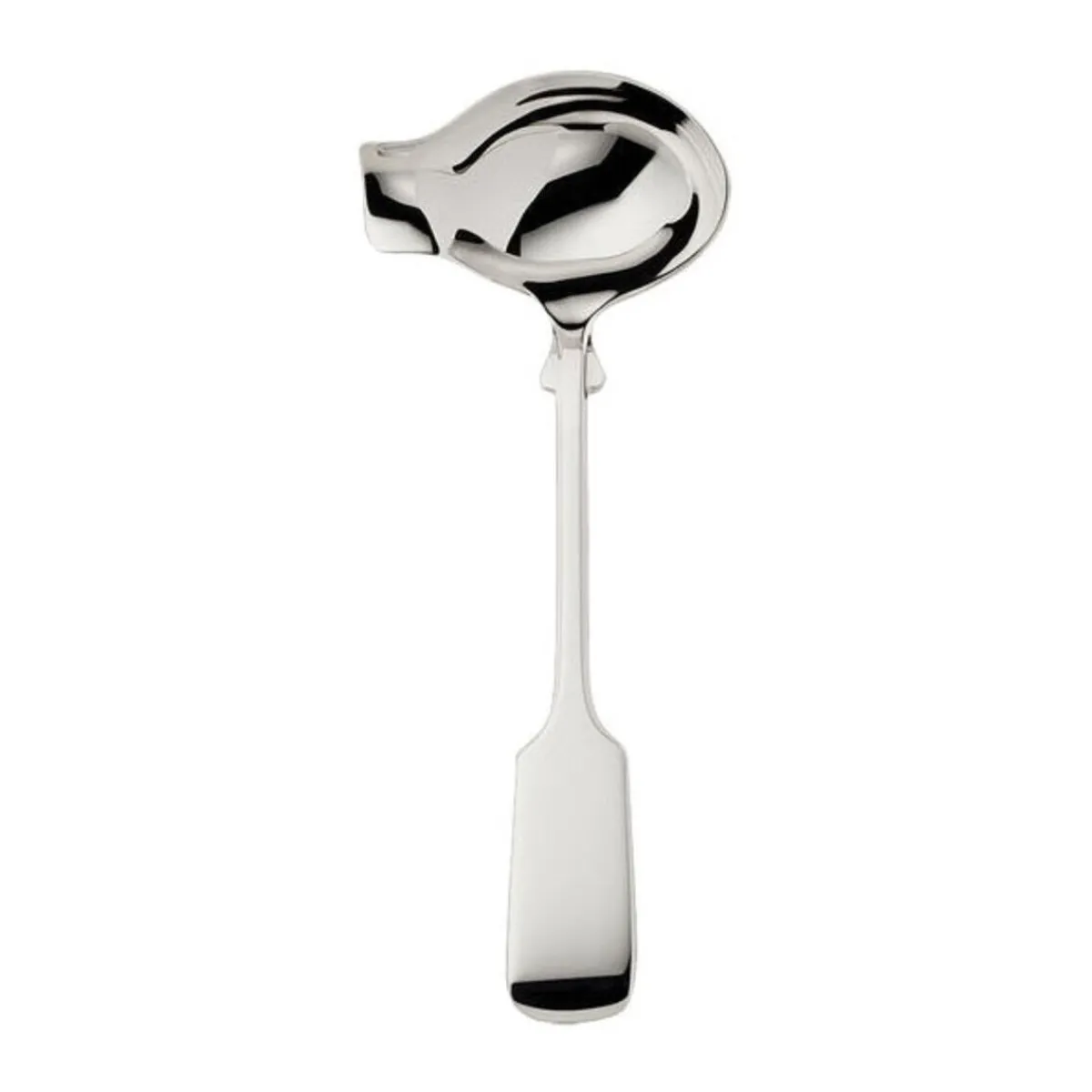 Die Marke Alt Spaten von Robbe & Berking steht für eine exklusive Besteckserie. Dazu zählt auch der versilberte Saucenlöffel mit einer polierten Oberfläche. Er ist eine glanzvolle Erscheinung durch sein elegantes Design und seine aufwendige Verarbeitung. Durch eine Schnaupe auf einer Seite lassen sich Bratensaft und Soßen bequem über das Fleisch oder Beilagen gießen. Der lange Griff ist am Ende breit ausgeführt und sorgt für ein angenehmes Handling beim Servieren.
