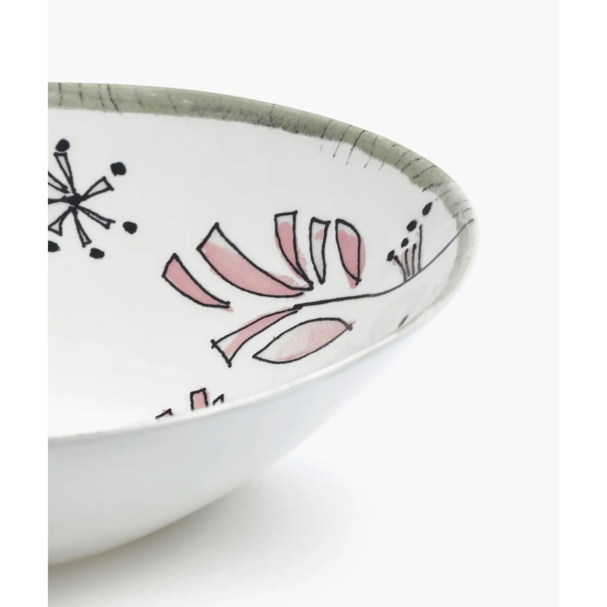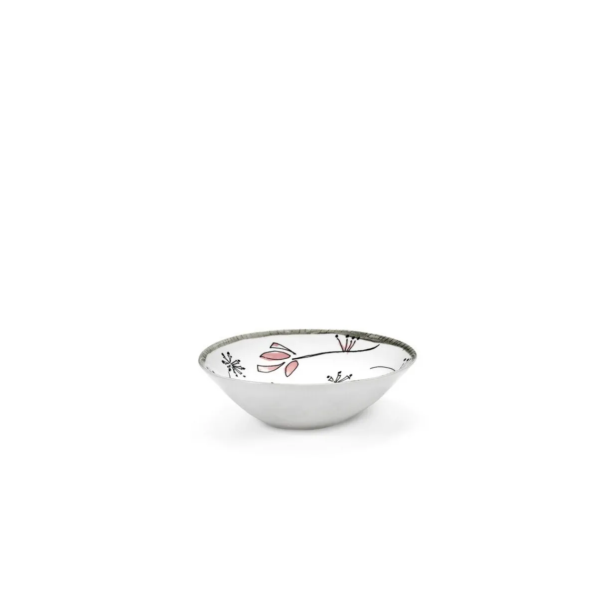 Zart, verspielt und einzigartig: Die niedrige Schüssel Midnight Flowers Fiore Rosa von aus feinstem Bone China Porzellan ziert verspielt Ihre Tafel und erinnert an unkonventionelle Momente des Genusses.