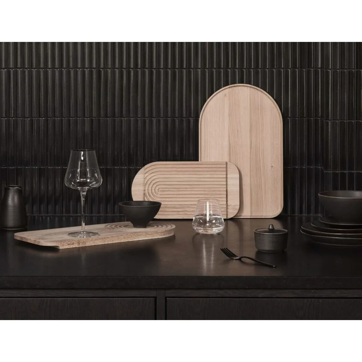 Das Servier- und Schneidebrett Zen von ist im Alltag vielseitig einsetzbar. Es fängt die Krümel beim Schneiden von Brötchen auf, bietet eine sichere Transportmöglichkeit beim Servieren und ist ein schönes Element zum Dekorieren.